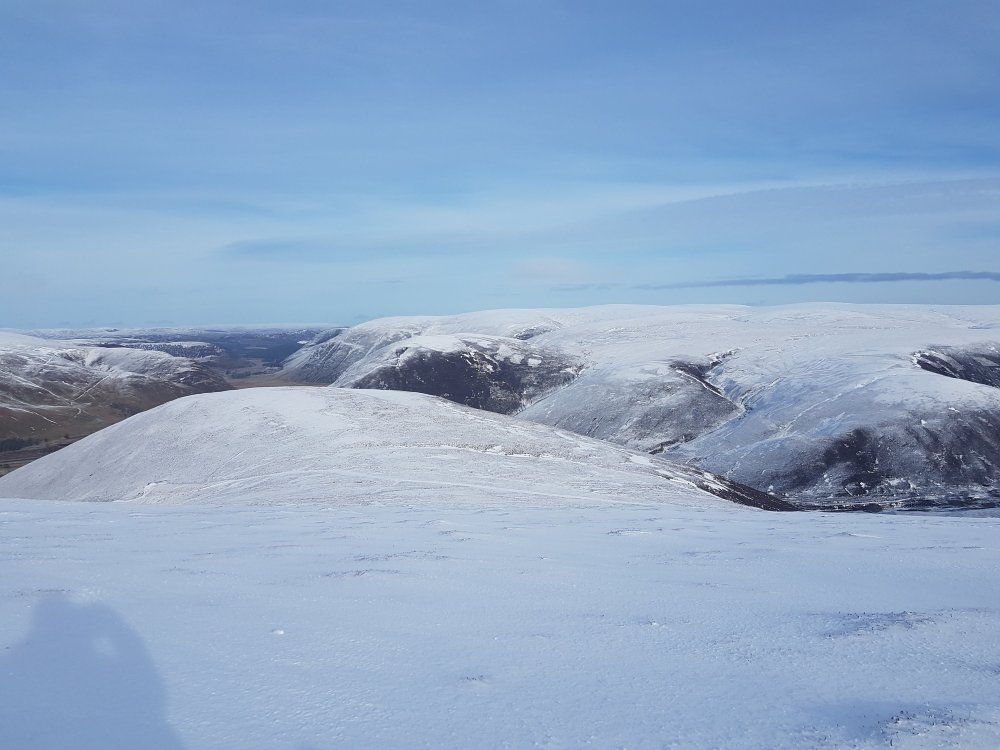 Day two was much better, there’d been a fresh covering of snow overnight and the hillside looked gorgeous. I went up to the plateau hoping for some mobile hares, but spotted one digging itself a snow hole a fair distance away.