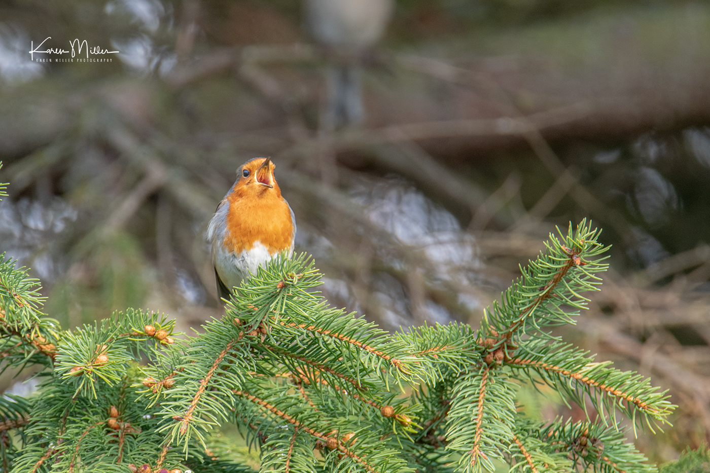Not to be outdone, the little birds would perch and sing too. The robin sat in the larch or pine tree in the mornings singing and would display to other robins. Both a wren and a dunnock liked to sit on the fence posts and sing their little hearts out too. Fab!