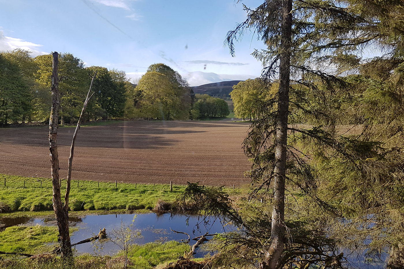 The Bamff Estate is a gorgeous place, I’m very envious of Paul and Louise. For me the holy trinity is wildlife, Scottish outdoors and photography, and this is a fantastic location for all three. If I could have anything I wanted then somewhere like this would be at, or close to, the top of the wish-list. Sitting in the cabin, listening to bird song and seeing the ponds, beavers and fields out of the window is really quite idyllic. It’s so far from my reality, but great to have a brief encounter with my longed-for lifestyle (with maybe a few more home comforts like running water and an inside toilet). I’m writing the first half of this blog sitting in the cabin, this is my view from each of the windows…