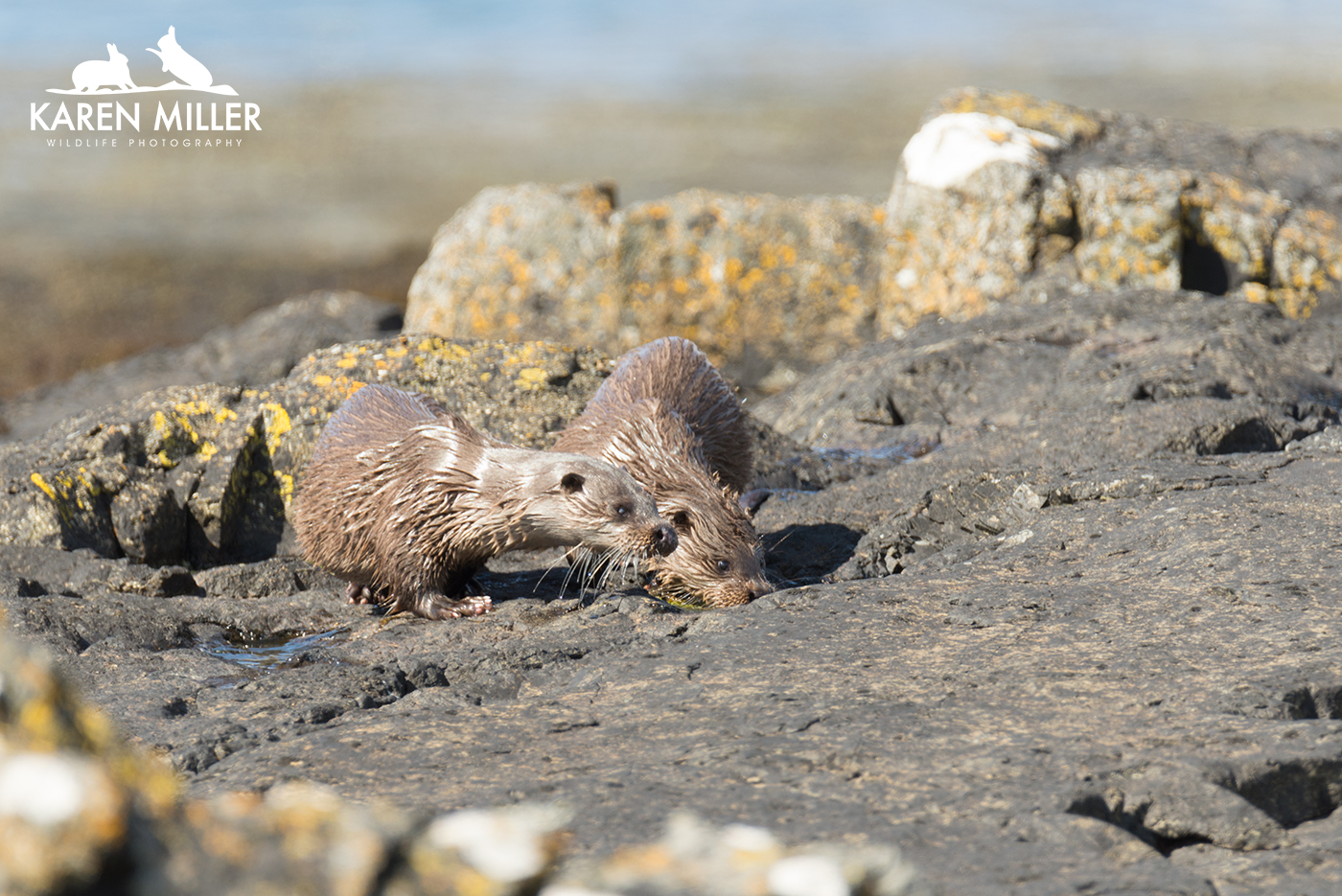 Sunday morning I was up bright and very early to go otter spotting. I didn’t have a whole lot of success. There were a pair fishing way out in the loch but when they came in they disappeared. However, it was lovely to watch them interacting out in the water. I managed this photo.