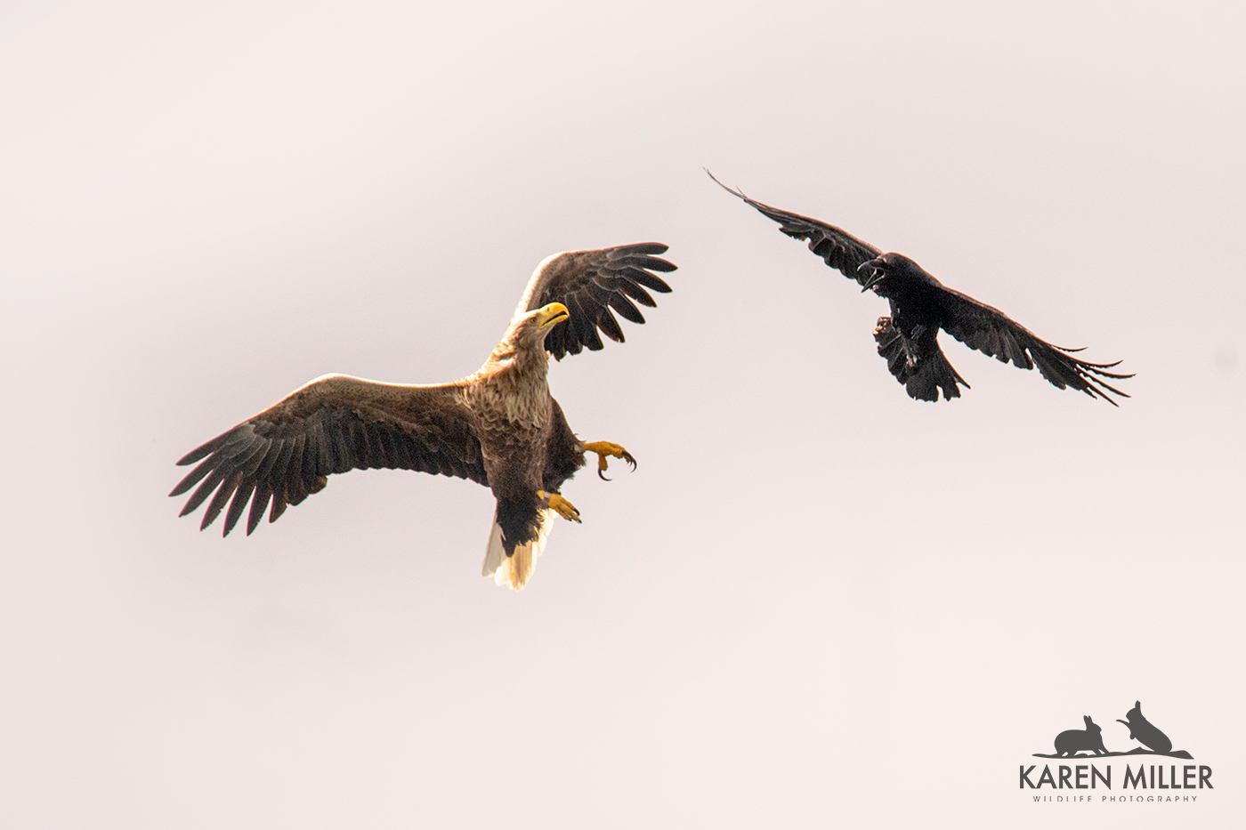 After another early start and another distant otter. Entertaining to watch the common sandpipers chasing, flirting and fighting though. Monday was our regular trip out with Martin and Alex of Mull Charters. I heartily recommend this if you’re on the island as it’s a fantastic way to see the magnificent white-tailed sea eagles up close and admire their awesome yellow beaks and talons as they scoop a fish out of the water. Both pairs came down for a fish and then we were followed home by the males from both couples – one for almost half the journey, hoping for a second helping (Martin only gives each bird 1 fish so it was out of luck), it was mobbed by a gull. Then just as it flew off the other male turned up again, also hoping for more. This one was mobbed by a raven. It was great to get to see the two birds for the entire return journey as they flew close above us. The light wasn’t great but I have some images I like.