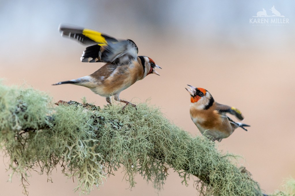 I’ve been collecting photogenic, lichen-covered, fallen branches on my travels and have started putting up a few perches for the birds.  The backdrop at the front of the house is great, the fields and Beauly Firth provide a lovely soft yellow and blue. It is the North facing side though which means at the moment there’s not a whole lot of light to be had and I haven’t managed to get a decent shutter speed for action shots of the birds squabbling over the sunflower hearts!