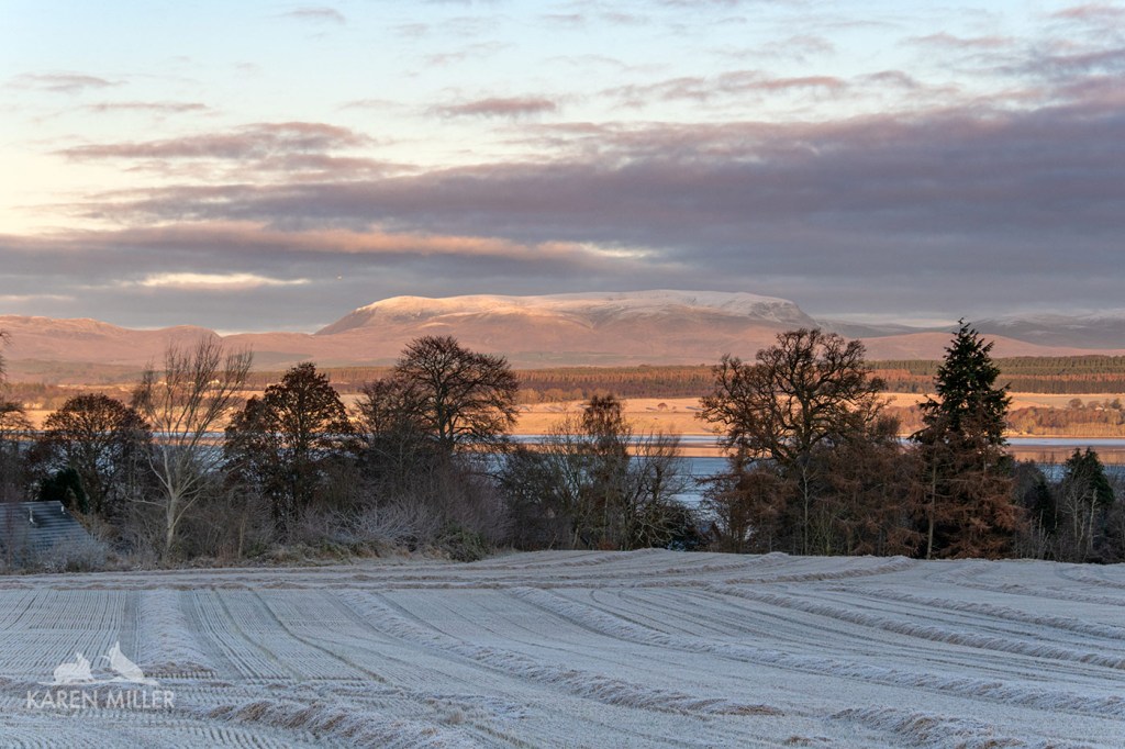 It’s now mid-December and the house is mostly decorated (there were some very iffy colour combinations) and there are fewer boxes in the garage to unpack.  The winter has been a mixture of very wet or very cold & frosty so far.  The latter is fab – the ground goes white, hundreds of birds turn up, hundreds if not thousands of geese fly noisily overhead, Ben Wyvis glows in the distance.