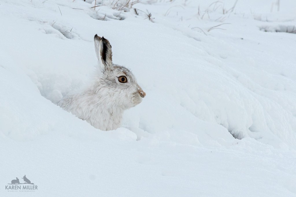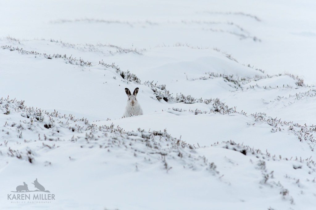 I have, of course, been to visit the mountain hares.  The conditions have been quite hard work, partly because I’m a tad unfit right now, also because there’s been a lot of snow and there are far fewer hares this year.  Casting my mind back to my first 2 winters on the hare hill, the animals were everywhere, you just had to stop and look once you got to the top of the hill and there were a few to choose from.  Now, due to 18 months of unfriendly weather (too hot/dry or too wet) the numbers have crashed.  It’s going to be a tough winter for guides when the season gets underway.  All that said, I’ve photographed a handful and lovely to spend time with them and to know they are close enough to pop down and see whenever I feel like it!