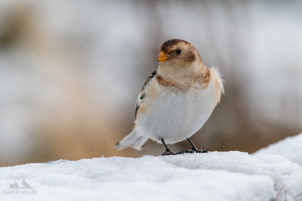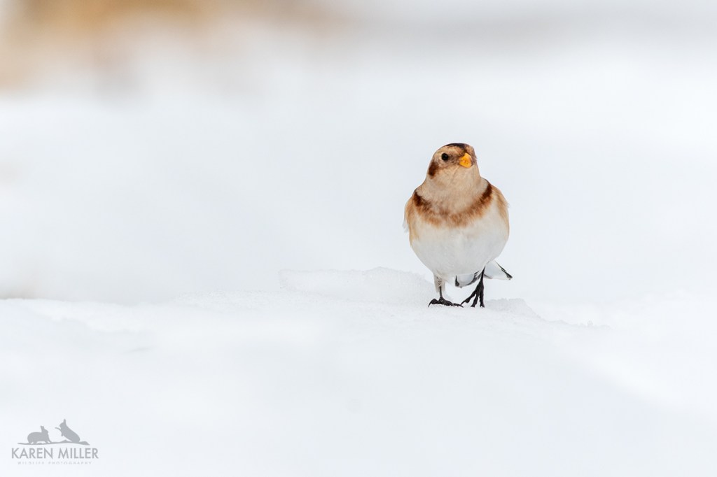 Snowy conditions are also the best time to photograph snow bunting.  They are beautiful little birds and turn up in a flock in the Cairngorms, hang around for a few minutes then disappear, only to start the cycle again.  They match their surroundings perfectly, but personally I like images of them in clean white snow best.