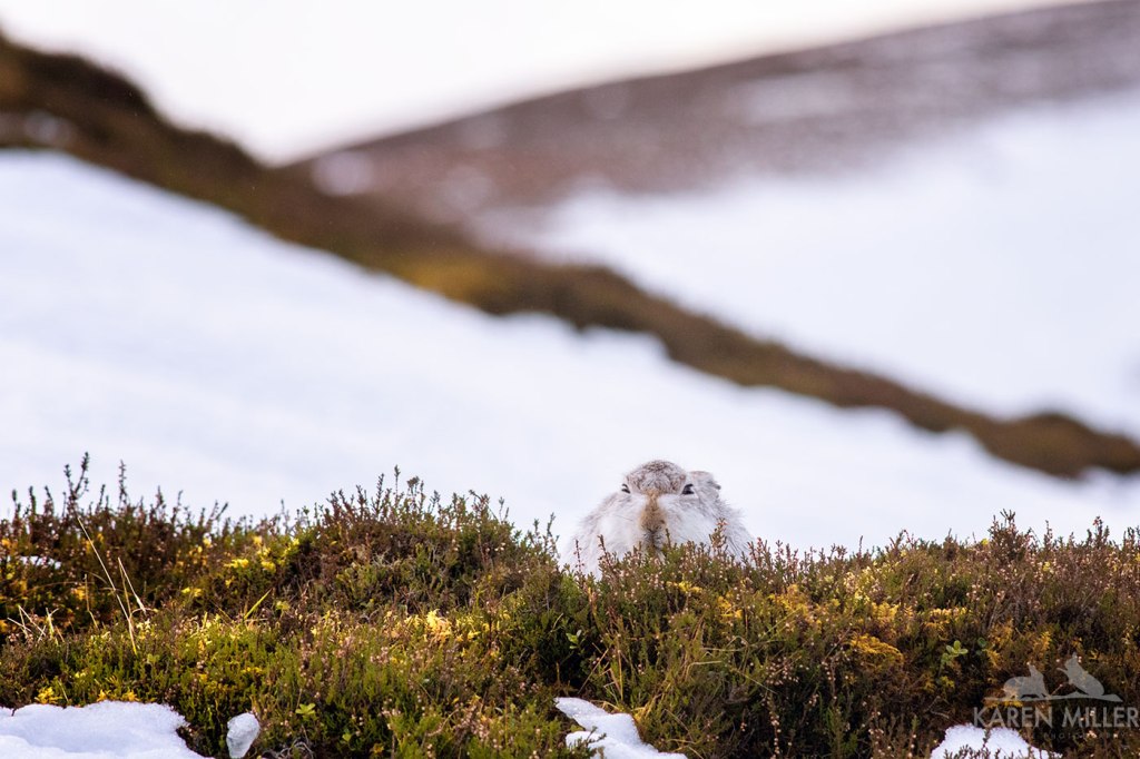 I’ve started to do some mountain hare guiding, both independently and for Black Isle Nature Photography, so I have spent a fair bit of time being blown about the hare hill. I’ve seen the poor animals in all sorts of weather this year already – sun, snow, rain, wind. I complain about conditions, but it must be especially tough for them. I’ve spent a bit of money enhancing my winter gear (sitting on the hill is FREEZING!!), which has helped a bit – I can heartily recommend down trousers and the Icebreaker “onesie” which make a bit of a difference. Still looking for the perfect pair of gloves though.