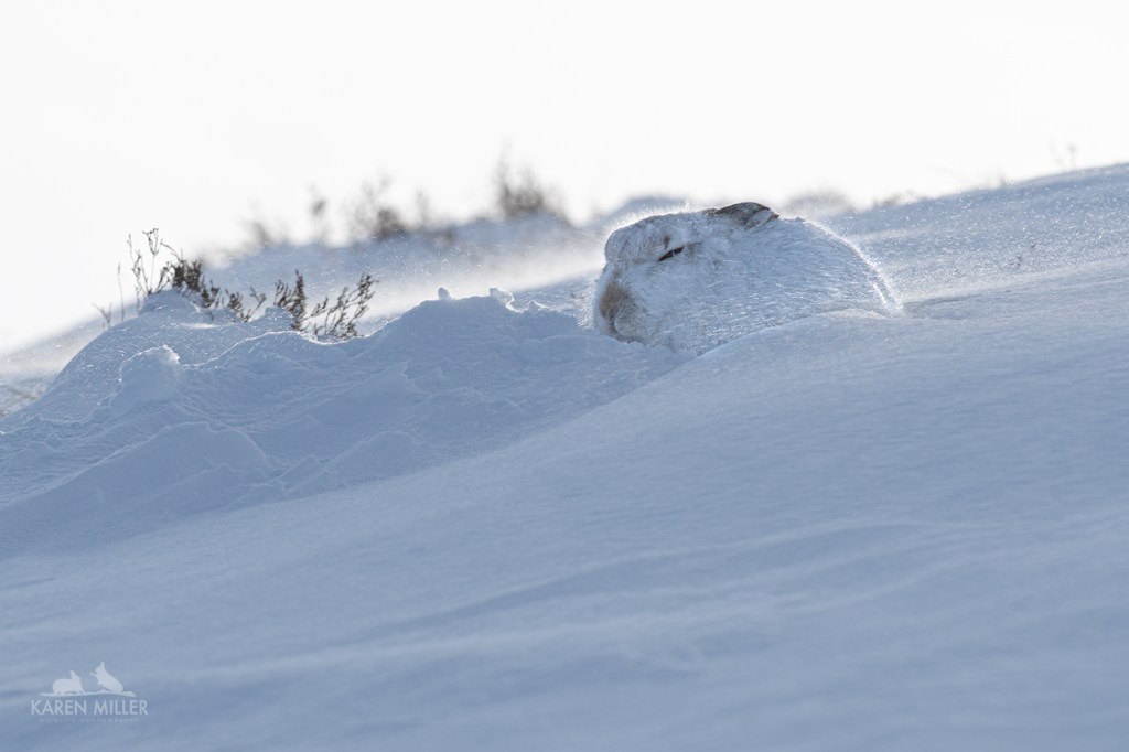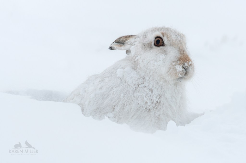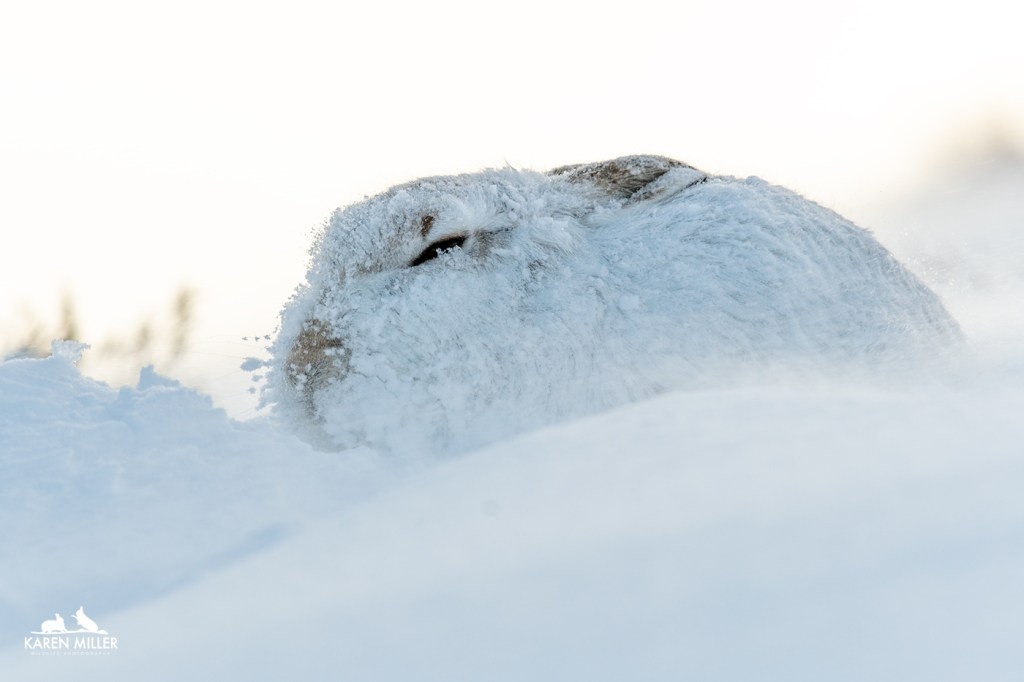 February brings more hare guiding days which is great, I love introducing people to my favourite animal. If you’d like to join me, please email karen@karenmillerphotography.co.uk and I’ll send you details. Hopefully the weather will improve, it’s very similar to January so far, wet and windy – but that does allow images like this … but I’m getting ahead of myself, more on this encounter in my next blog!