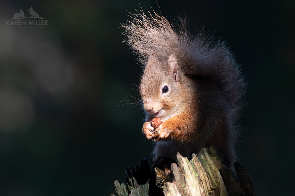 It was my first visit to their red squirrel hide. I wasn’t sure what to expect as I’ve seen few images online from there, but I’d heard good things. It’s a lovely setting with a backdrop of pine woods and mountains. Decent light, 4 person hide with beanbags provided and plenty of squirrel action. The squirrels were obliging enough to sit and eat many of the nuts in front of the hide rather than dash off with them. I’ve updated my “Where to Photograph Red Squirrels in Scotland” blog with more info.