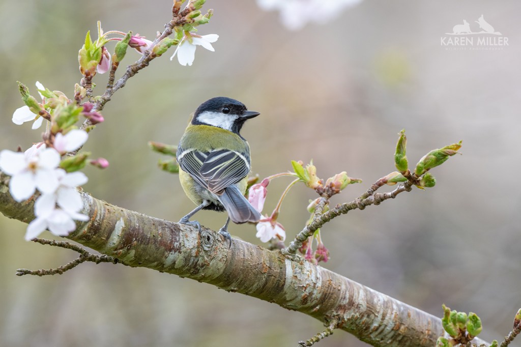 Because I moved into my new house in October/November I had absolutely no idea what was in the garden. Lots of young trees certainly, but what they were was a mystery. They are now coming to life and I seem to have quite a few blossom trees, both pink and white. They look beautiful. I therefore resolved to photograph the birds perched in them. I had purchased a seat hide for use in the woods (more on that later), and I erected it in the garden at a reasonable working distance and settled down to await the birds. The cherry tree I chose had a good clean background due to the distance between it and the trees & bushes behind. You don’t want a messy background to spoil the images if possible. The birds for the most part didn’t hang about the tree though but prefered the dark trees and the hawthorn. But I was able to get a few images I like – they really shout out spring!
