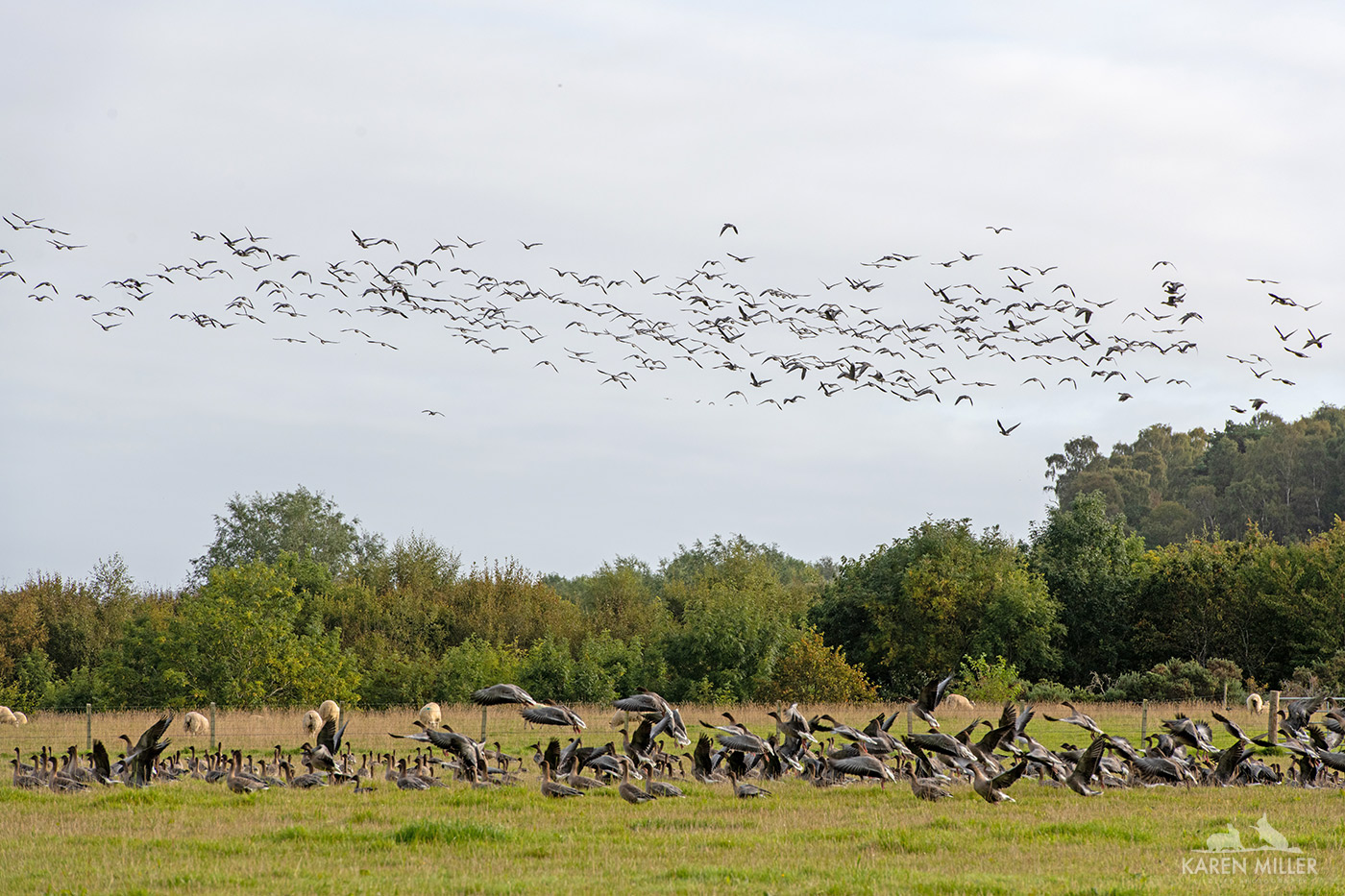 Finally, the pink-footed geese returned! The sound of the thousands arriving was awesome. For a few days they were everywhere and on opening an outside door or window their honking was amazing. I put together this little video, do put the sound up to hear them.