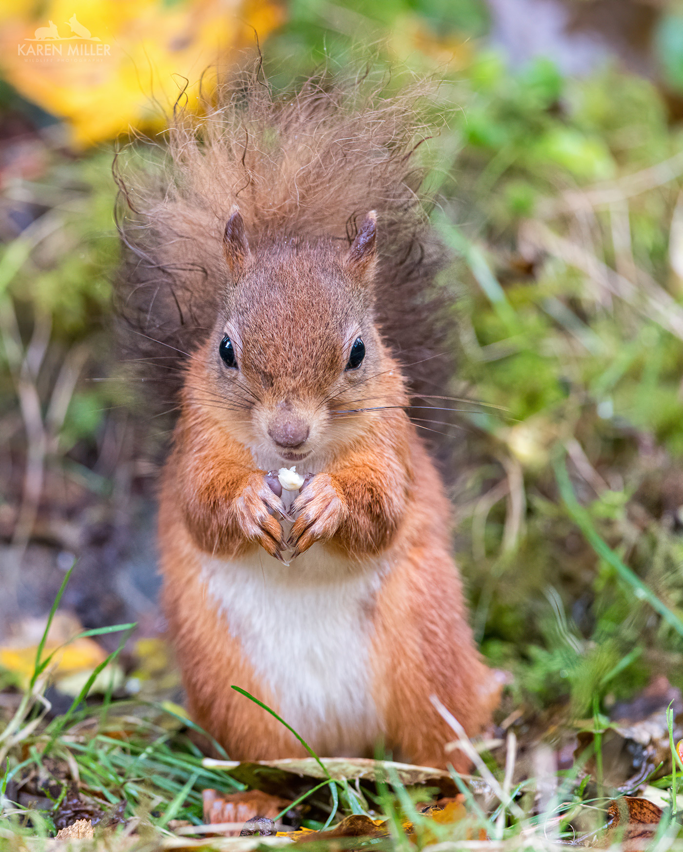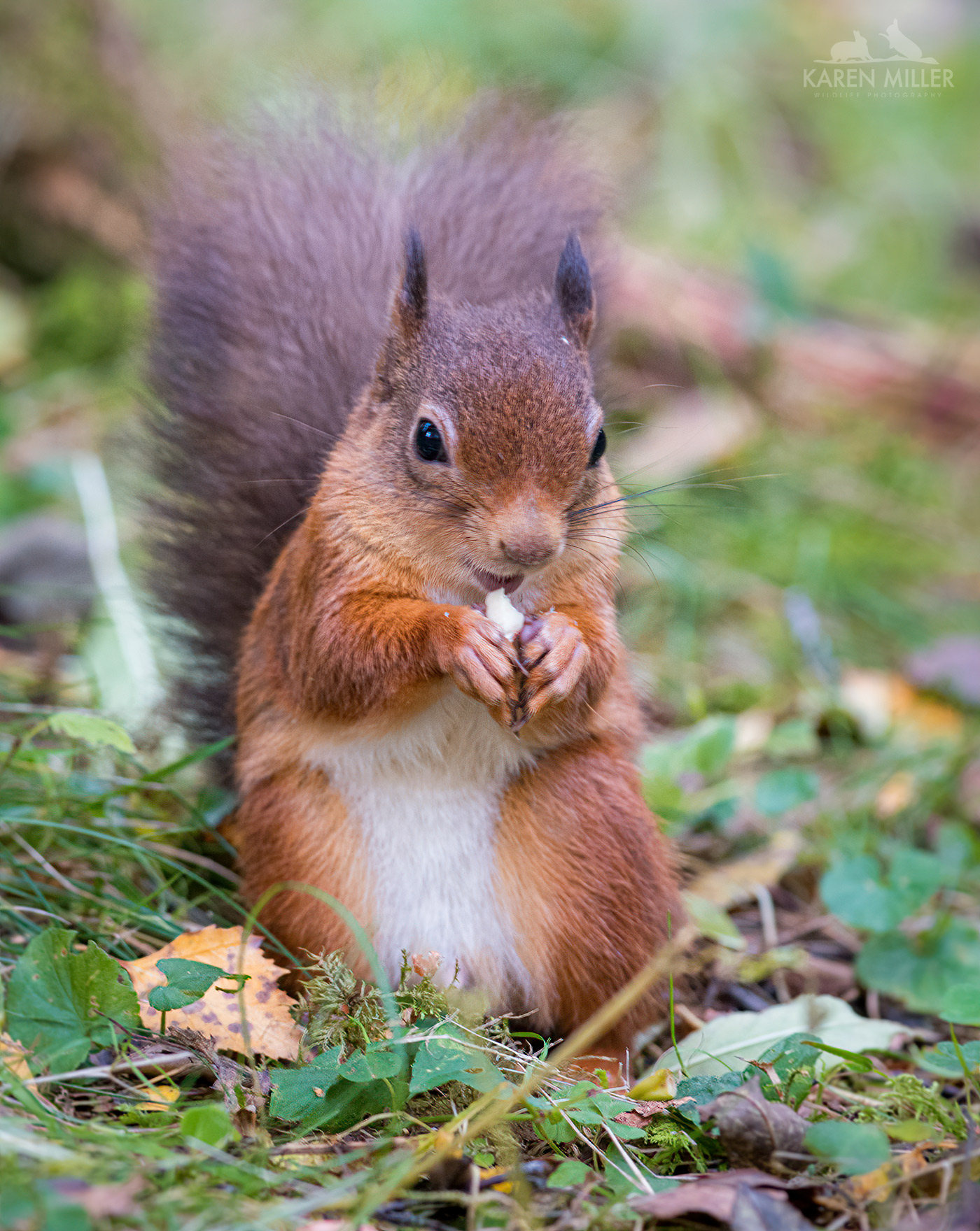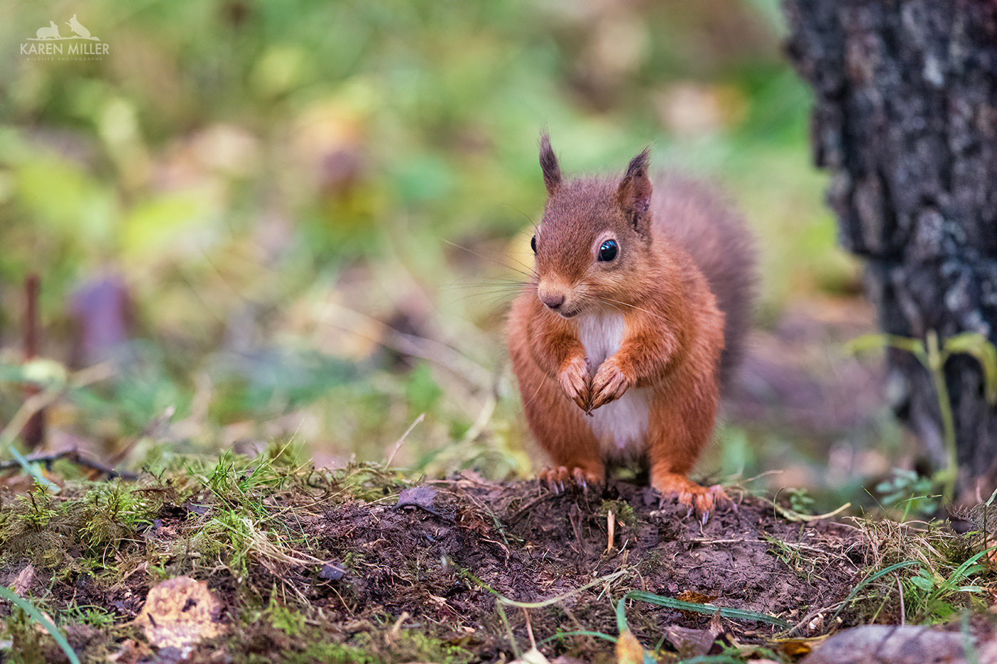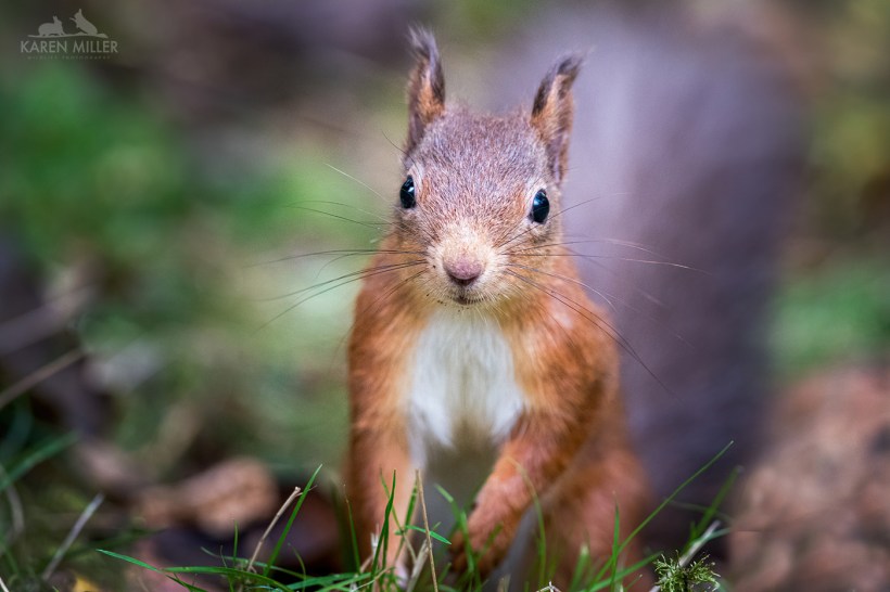 The squirrels have been fab. I love the new location of my hide. It’s next to the old one but more open and has the opportunity to photograph them in trees and on the ground. Because I use a pop-up hide I can open the larger front viewing panel then push down on the bottom to go lower which allows almost eye-level images of the ground-level squirrels. It still amazes me that they are mostly totally fine with this, but won’t stick around if I’m outside the hide. I’m pretty much hanging out of it! Some of them do come over and stare at me.