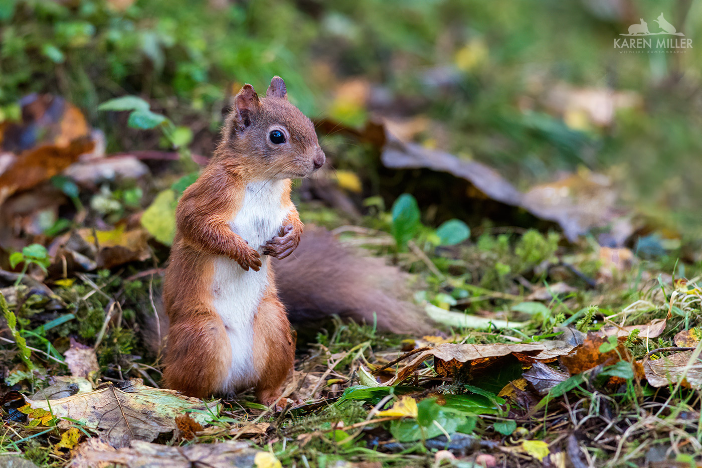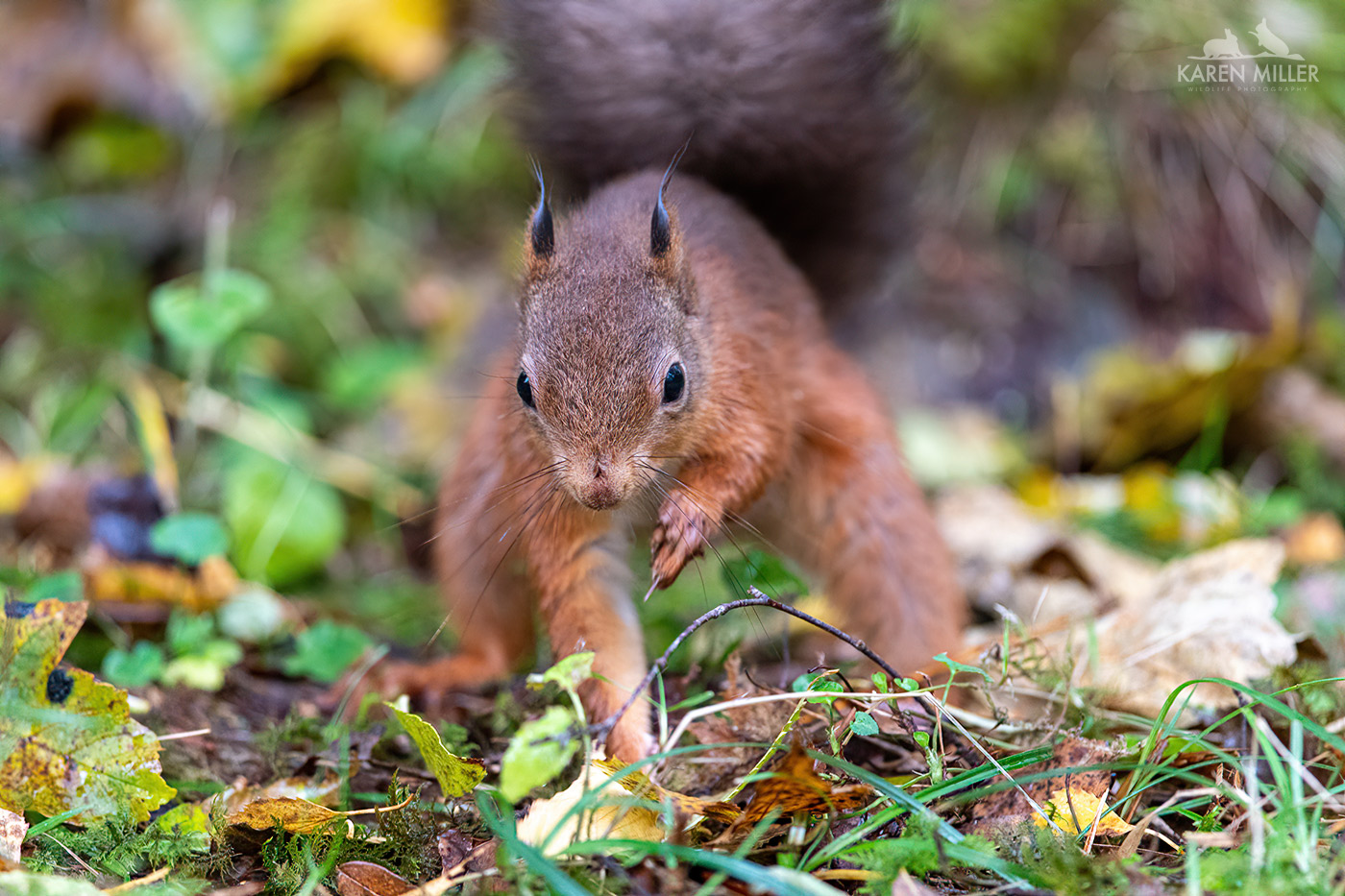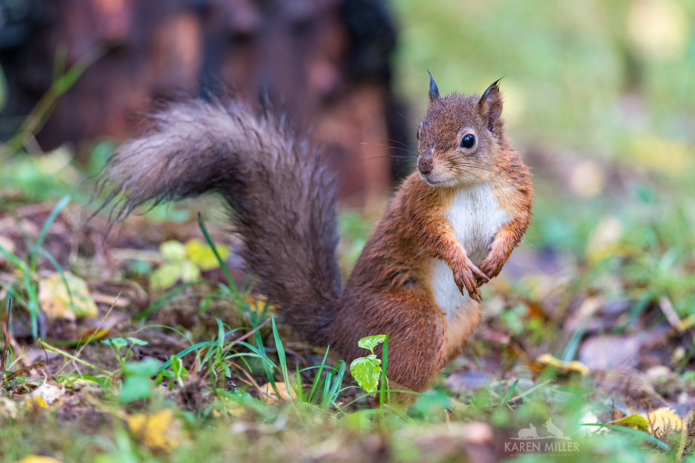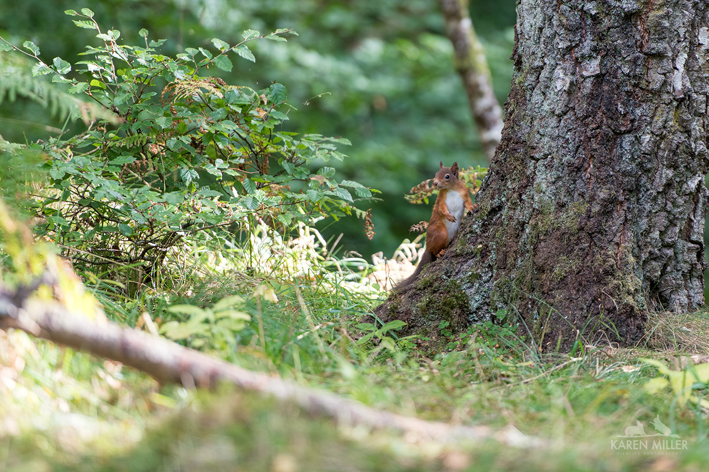 The squirrels have been fab. I love the new location of my hide. It’s next to the old one but more open and has the opportunity to photograph them in trees and on the ground. Because I use a pop-up hide I can open the larger front viewing panel then push down on the bottom to go lower which allows almost eye-level images of the ground-level squirrels. It still amazes me that they are mostly totally fine with this, but won’t stick around if I’m outside the hide. I’m pretty much hanging out of it! Some of them do come over and stare at me.