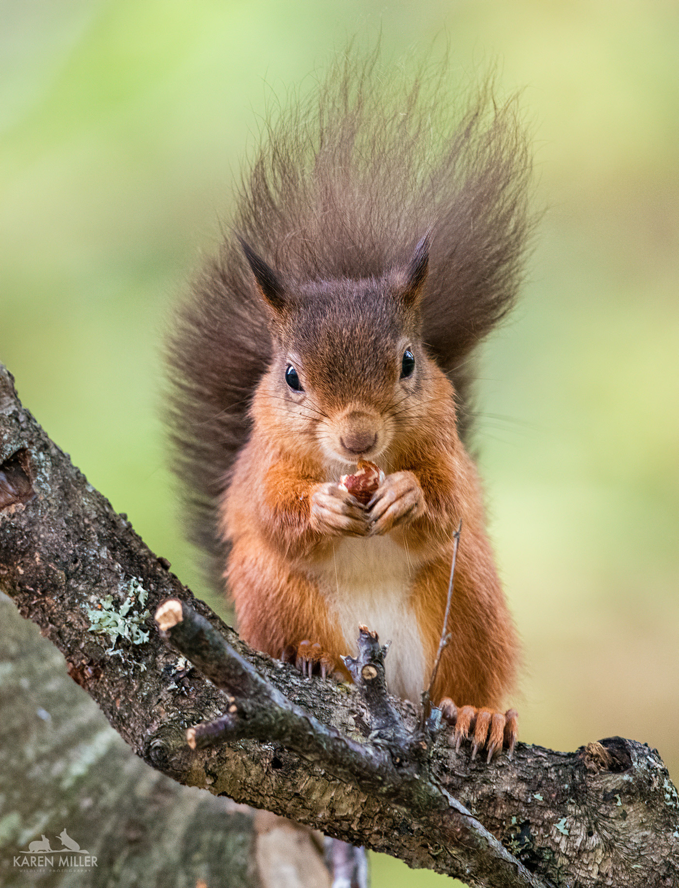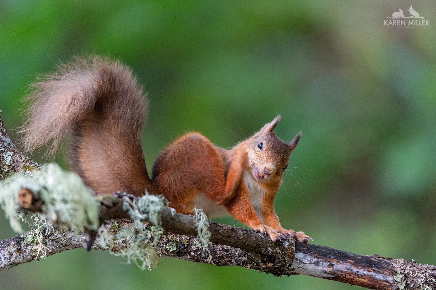 Talking of squirrels, if you haven’t already had enough of them, I spent a few more days in the Black Isle Nature Photography pine marten hide hoping for marten visits now the short season was over. The squirrels were very much on form
