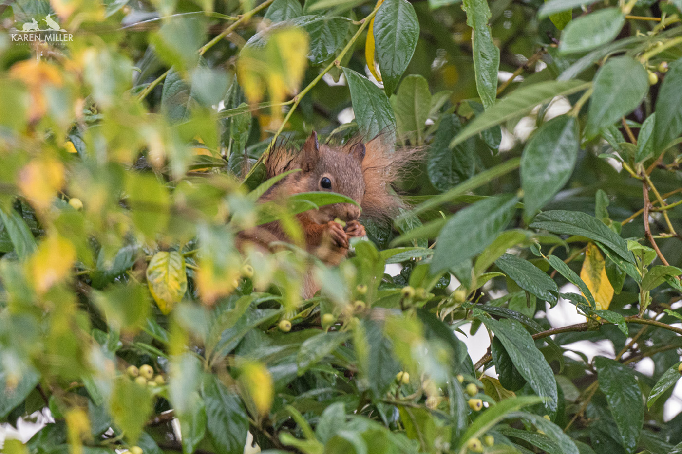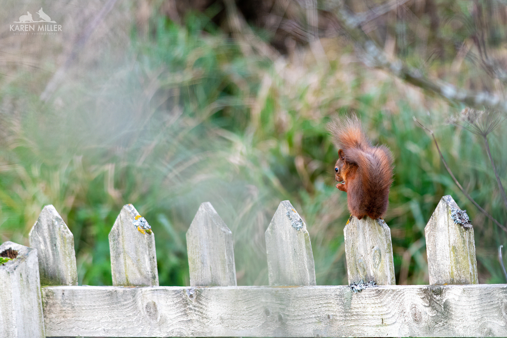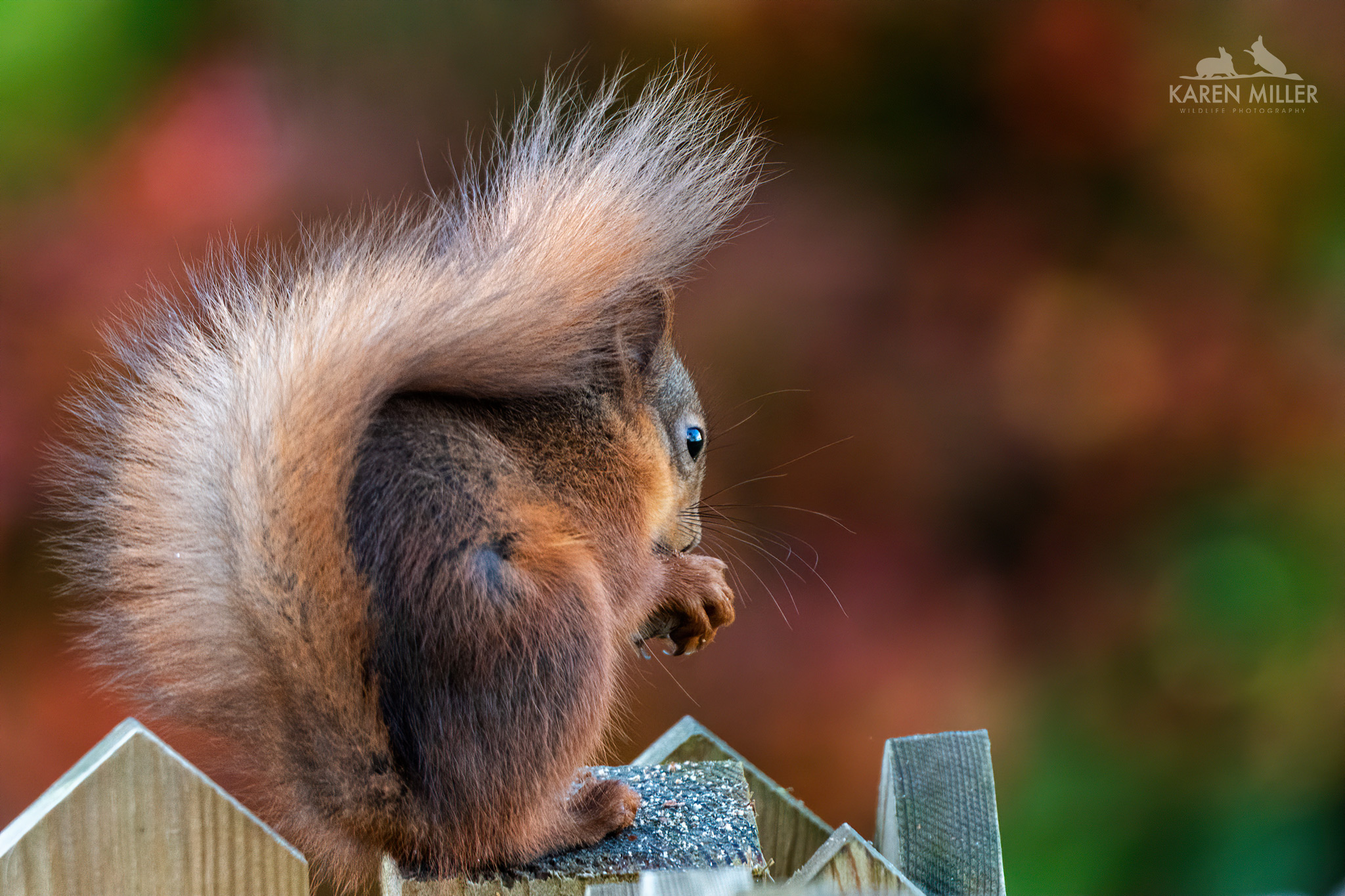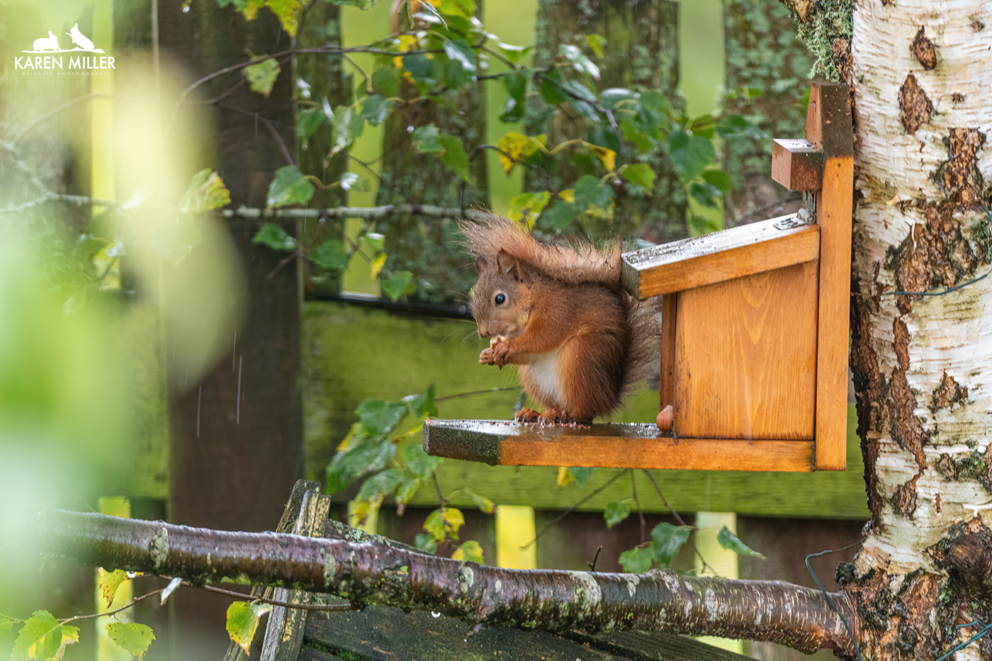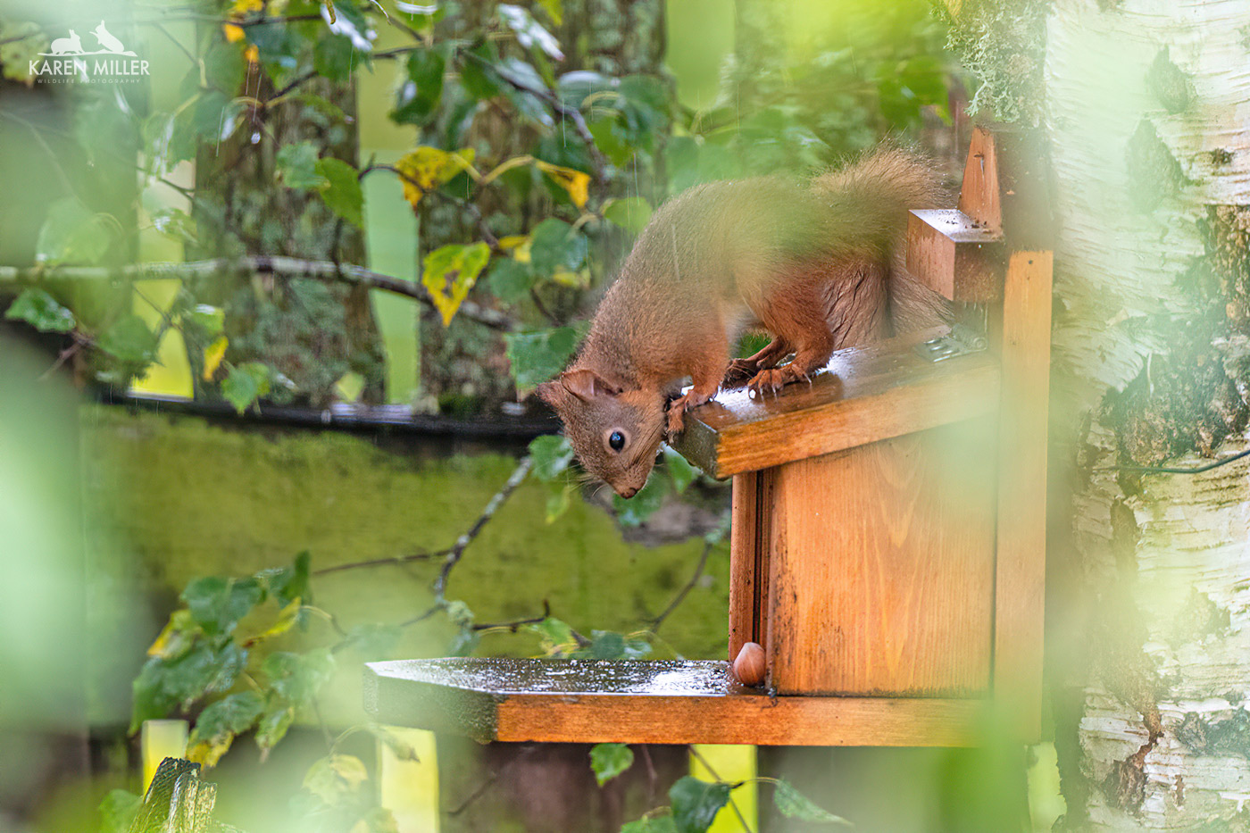 This time it wasn’t a one-off. A day or two later I saw two playing together on the fence, but I couldn’t get any images, and then a slightly larger one with tufts appeared, and then another! So within the space of a week I went from no red squirrels to four. Amazing. Of course this brings with it all kinds of stress – the road; next-door’s killer cat; the carrion crows who are territorial thugs and there’s a sparrowhawk too. But none of that can quite take away from the joy of having these wonderful little animals in the garden. I can’t adequately put into words how fantastic it is to look out the window and see a red squirrel sitting munching on a nut – and boy, do they get through the nuts! I’m presuming they are the overflow from the woodland squirrels. Given that there are so many there now, it was maybe getting a bit too busy. These ones are the winners though as apart from all the dangers, they get way more hazelnuts. Red squirrel kittens don’t have a high survival rate, and late season ones I presume even less so, therefore being able to help “mine” out with some tasty treats is great and I have everything crossed they make it to adulthood.