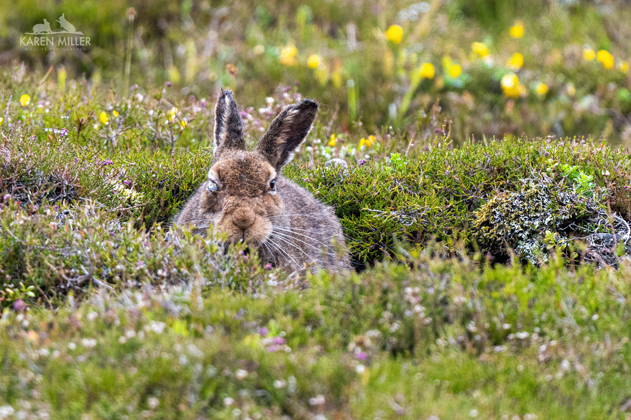 It’s just as well I have the rabbits to entertain me as I’m struggling with the mountain hares this summer. After the sheer joy of following four leverets last year I’m failing miserably to find any at all and I’ve spent many a day walking miles looking for them. I worry that the cold wet April and then the hot dry July might not have been in their favour and with so few hares left in the location to start with it’s not looking good. I’ll keep trying though as I miss them. Here are a few images I took of adults a few weeks ago – they’ve now gone to ground and disappeared. The “hare hill” used to be my happy place but it makes me sad now, so few hares left.