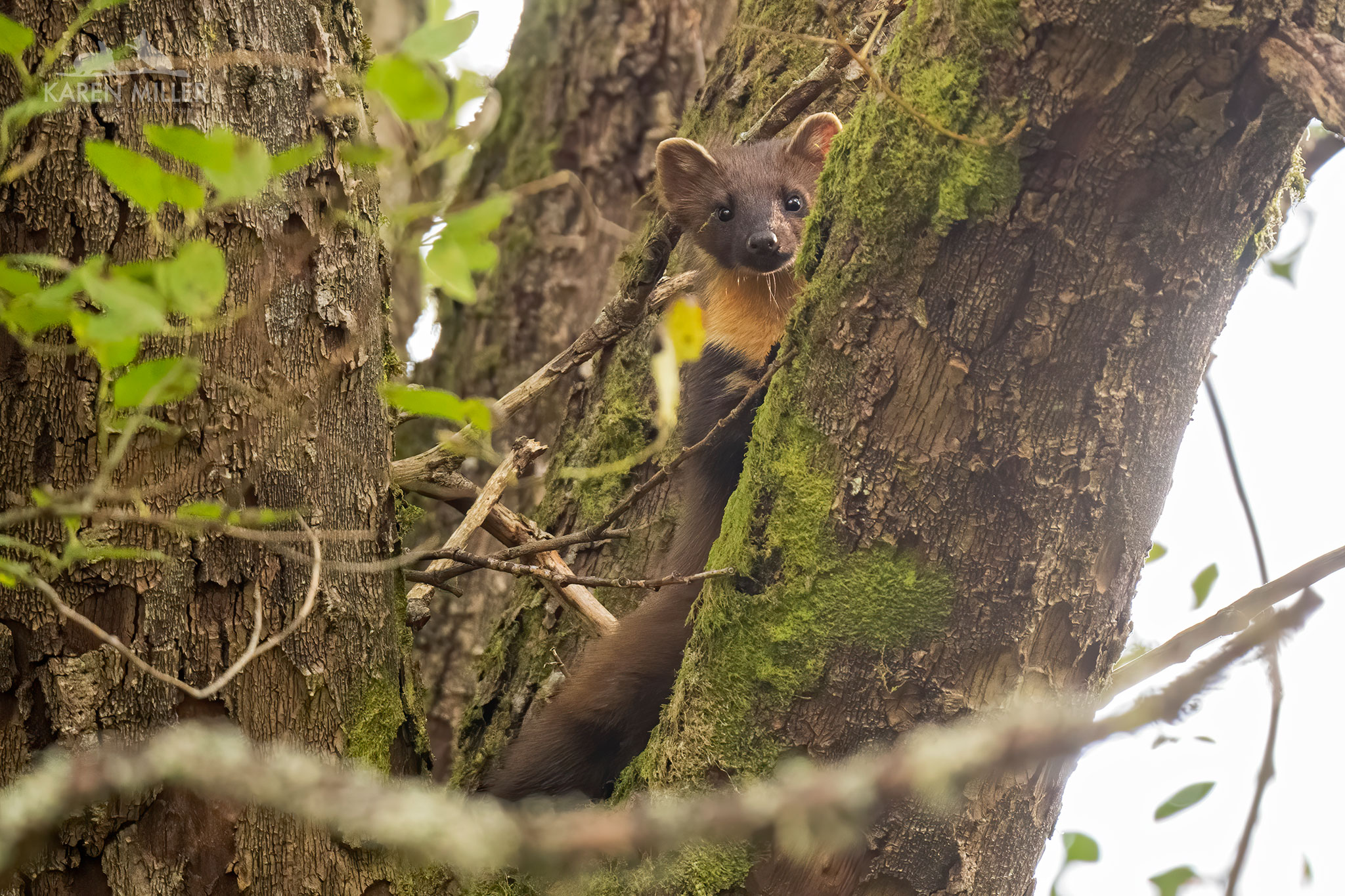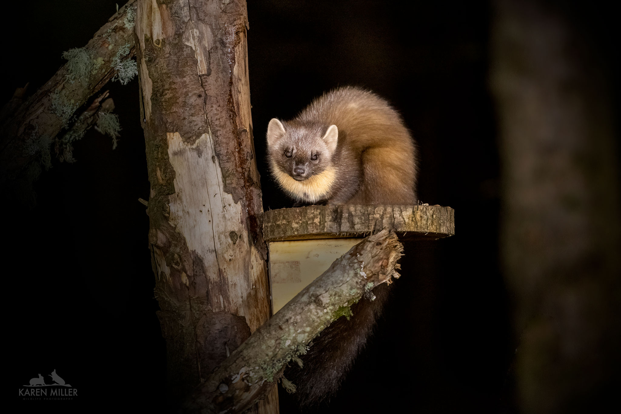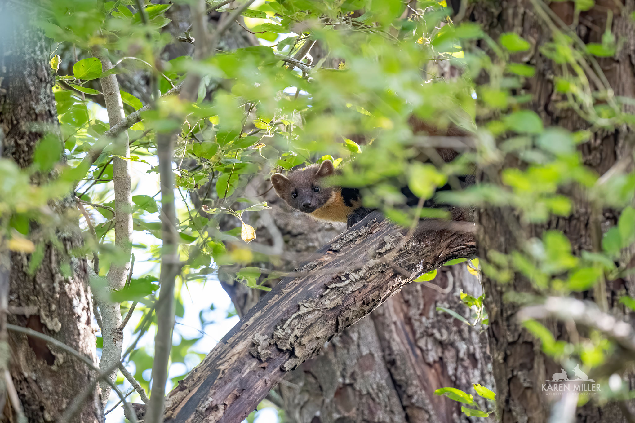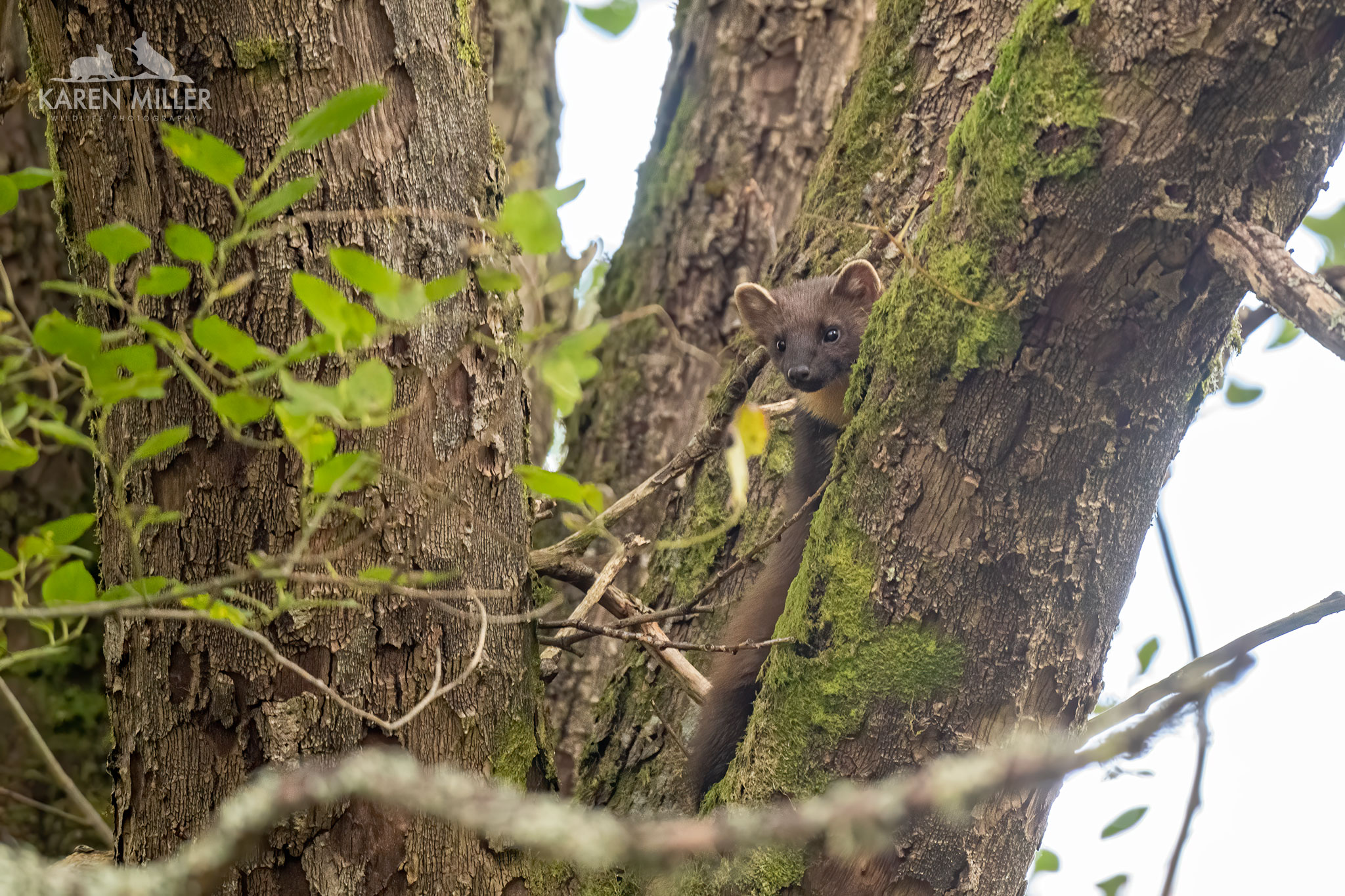 A pine marten kit! Although I’ve followed my local martens via my trail cameras I’d never set eyes on one of them so this was such a thrill. It happened in October at 10.30am! The marten sat in the tree for 10 minutes watching us – Patty even came down for a nut during that time. So lovely to finally see one of the local martens.