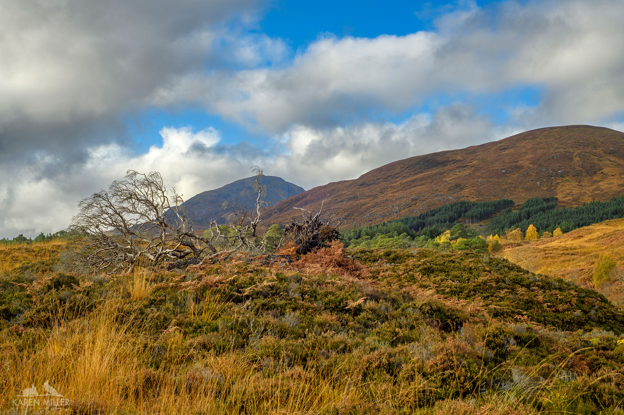 It’s been a strange Autumn this year weather-wise. The weather remained mild and the leaves on the trees took a long time to change. The closest oak to my house is still looking more green than orange and it’s almost December! After missing the autumn colours last year I was determined to make the most of them and visited a few of the local glens – I’m lucky to live close to all the Inverness-shire glens. I don’t tend to take landscape images but I did dust off the 24 and 50mm lenses and tripod for these trips. I was given some tips on camera settings for landscapes by a workshop client which certainly helped.