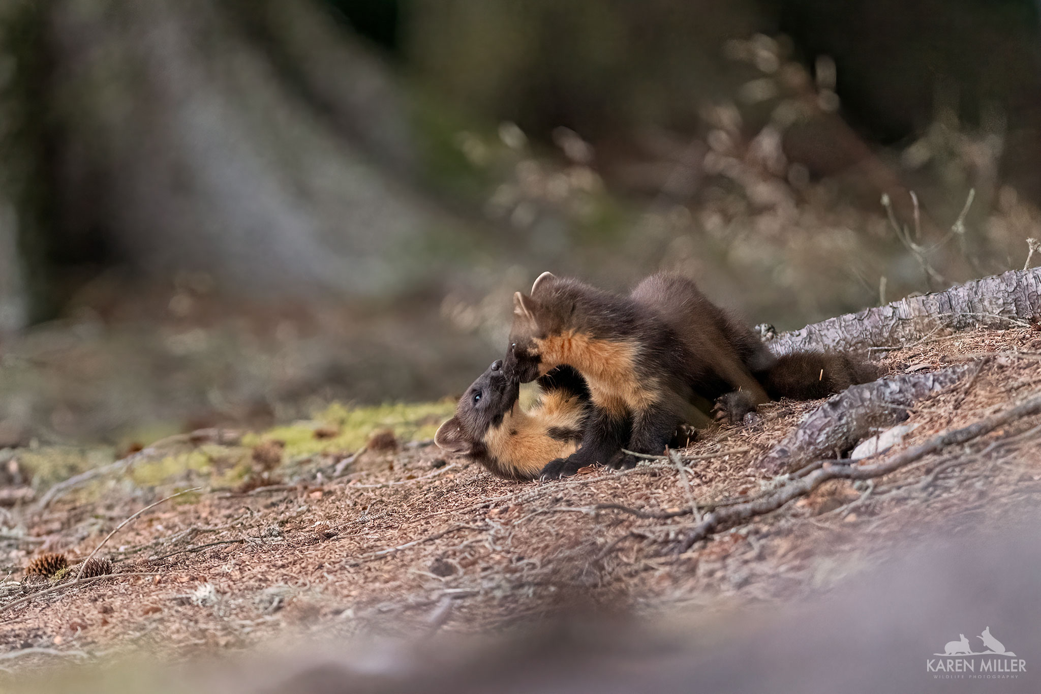 I spent 10 days or so photographing pine martens in August and it looks as though I only featured images from the beginning of that experience in my last blog. It was a real privilege to spend so many days in the company ofthree siblings.