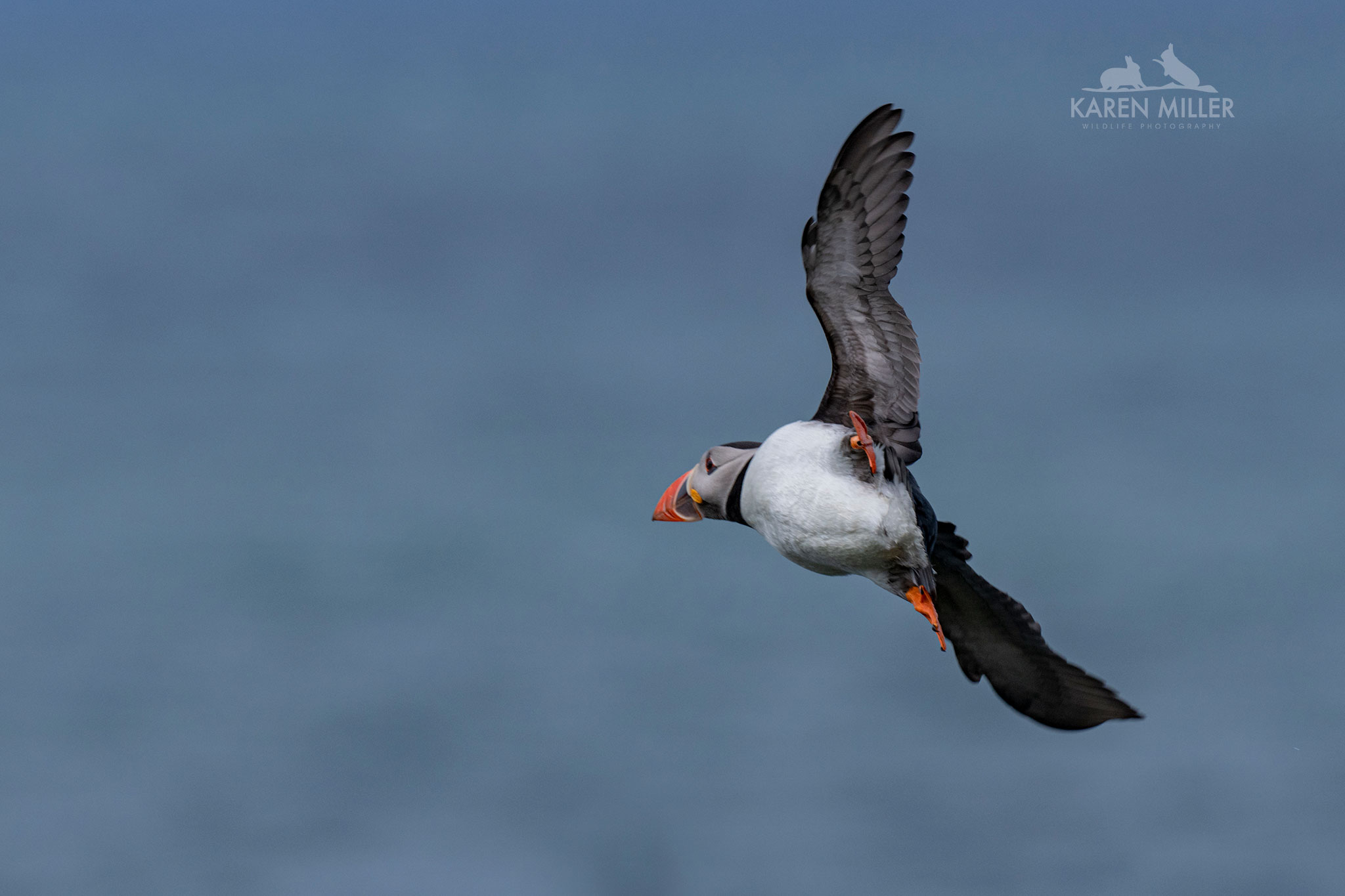 For birds flying from left to right (or the opposite) the same technique applies but you’ll find they are considerably more difficult to track as they zoom past you. In this situation I would suggest photographing those at a distance from you to make it a little easier to keep your camera on the bird. I try and include some of the background in the image rather than just sky, it makes the images a wee bit more interesting.