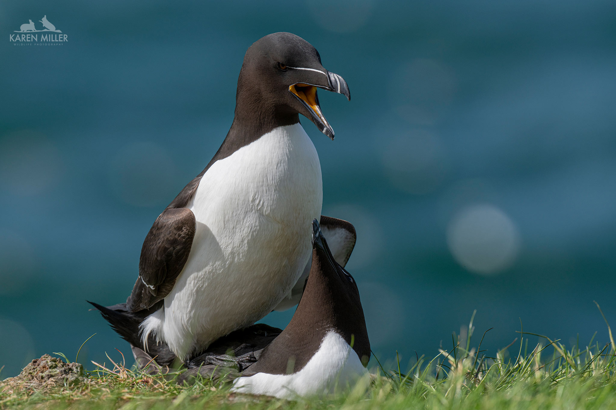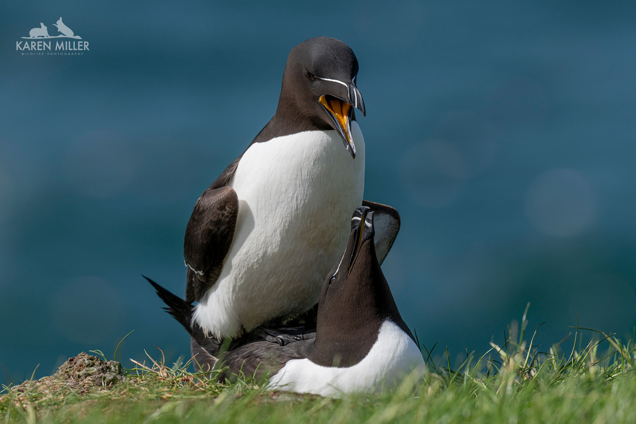 I did spend a fair amount of time watching and photographing the razorbills. I always feel a little sorry for these birds as they are similar to puffins in many respects but just aren’t as colourful so are often ignored. They do have vibrant yellow mouths though and I think they look very handsome. Some of my favourite images from Lunga this time were of these birds. I captured these two mating.