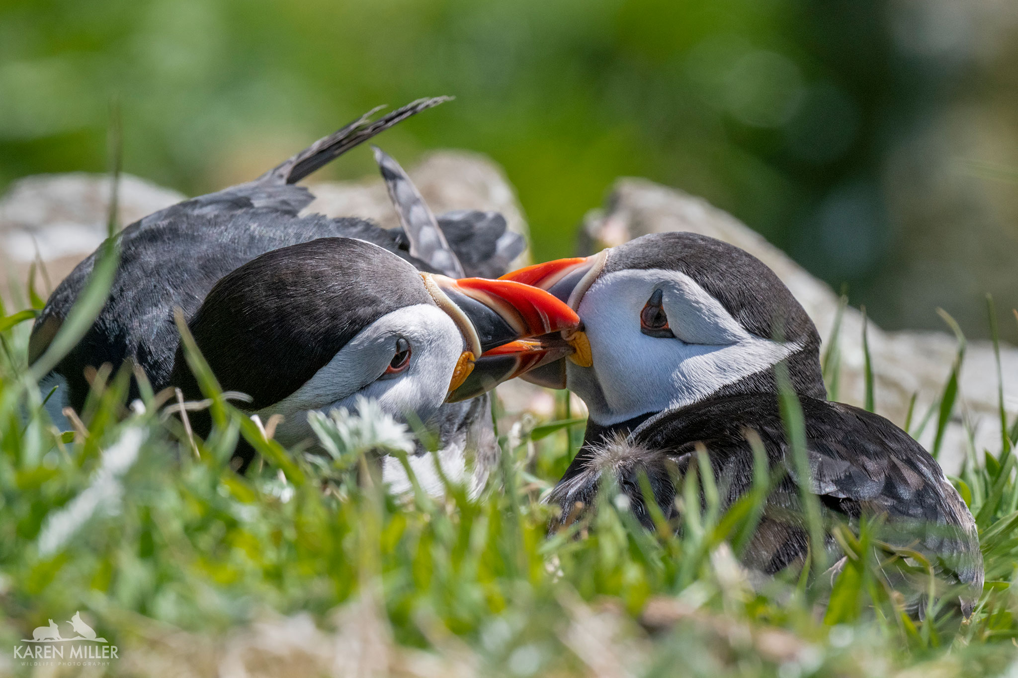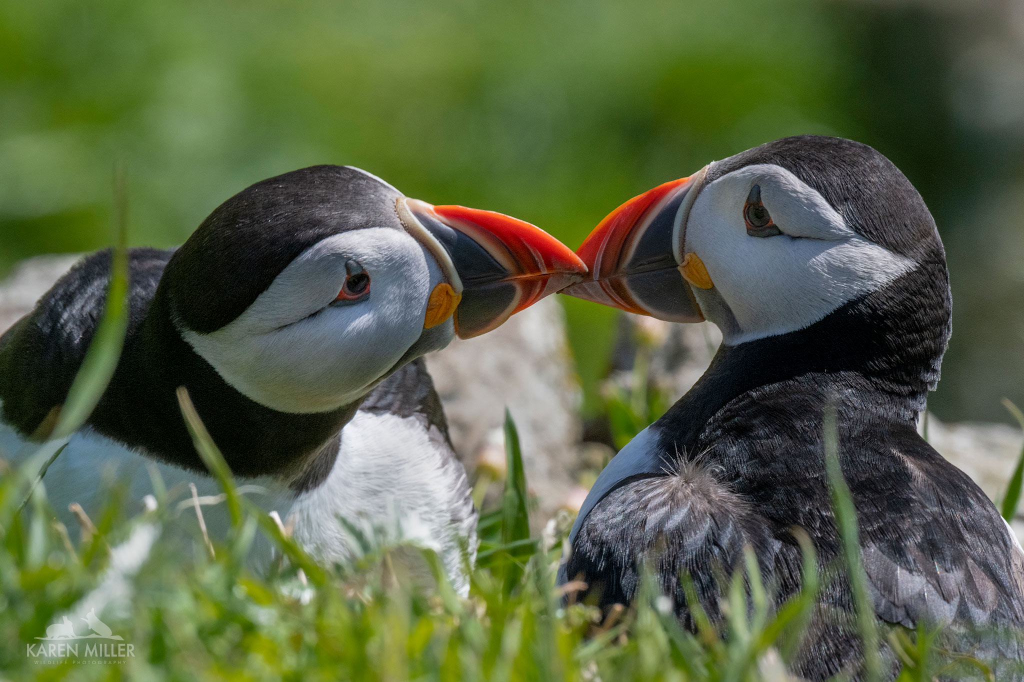 I spent ages watching this pair. They were regularly billing (bumping their bills together) which is what many seabirds do to reaffirm the bond with their partner. Their version of kissing. This couple were so romantic, I felt all warm and fuzzy inside. The light at this point was very harsh and the grass a bit annoying, but I think the images clearly show their affection for one another.