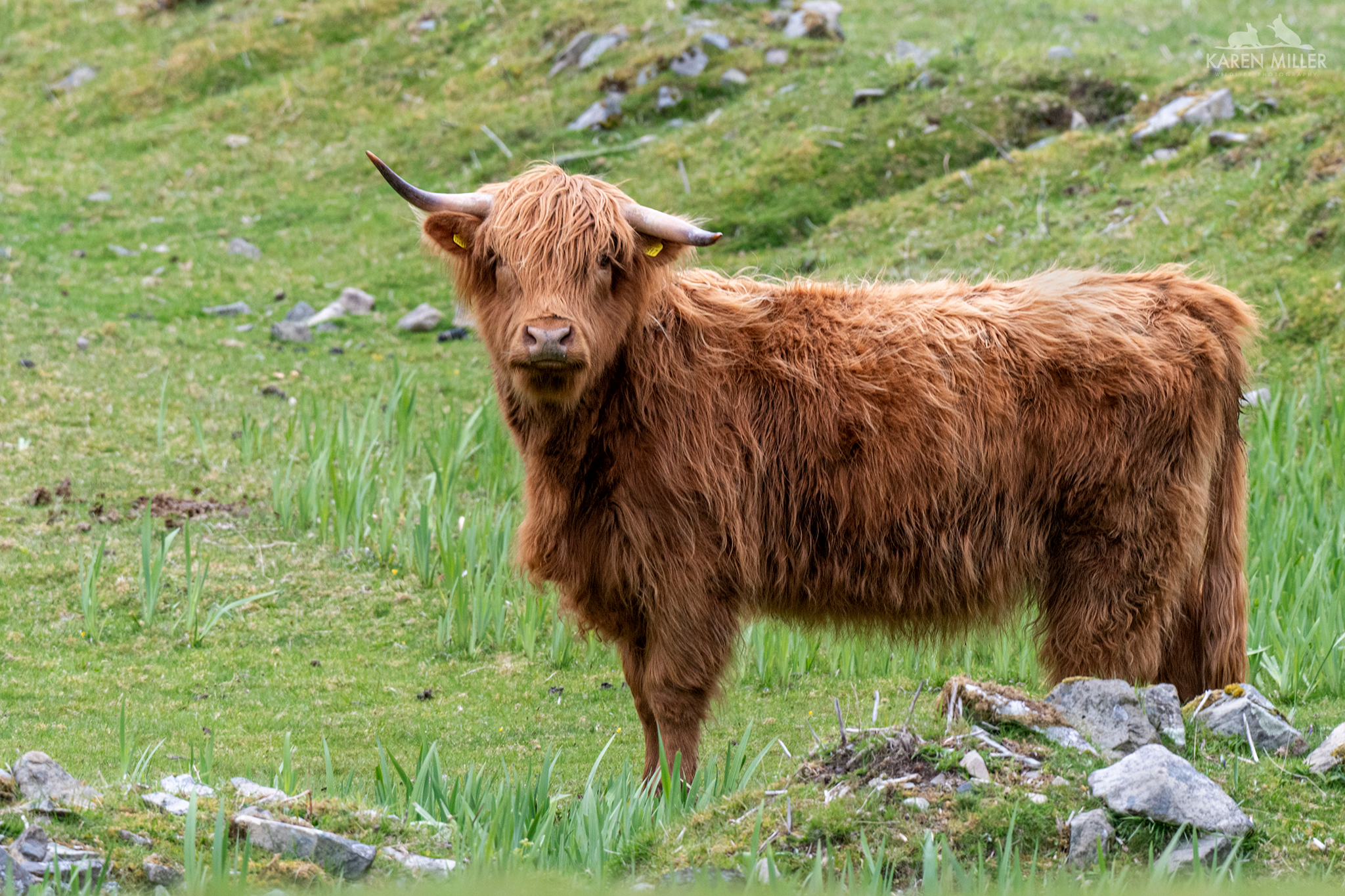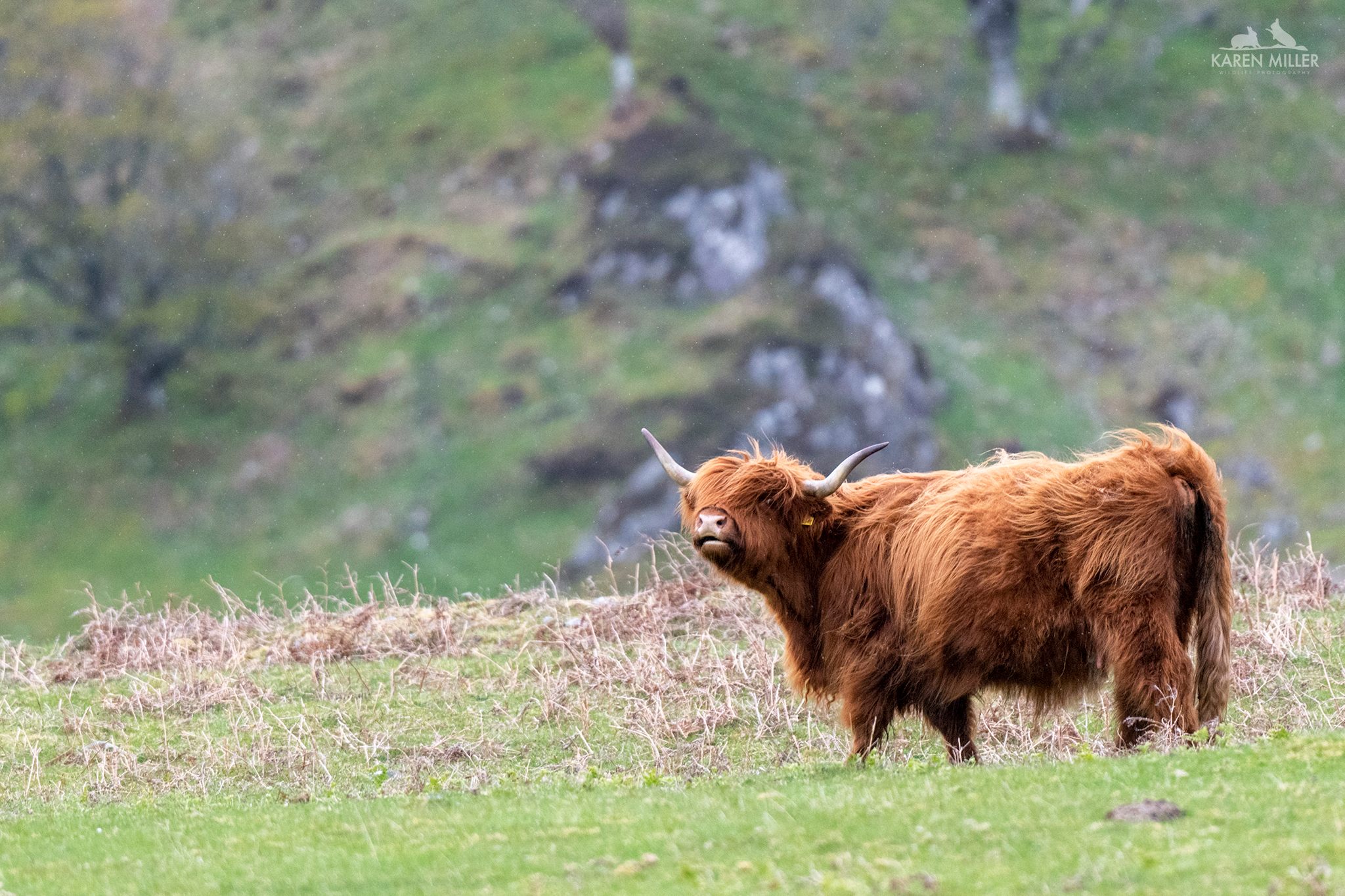 Wednesday was Lunga (see below). Thursday I was family chauffeur and we visited Loch Buie. It was another wild day but we managed a walk in between rain showers. Rather than wildlife, all I photographed on this day was livestock – sheep and highland cows!!