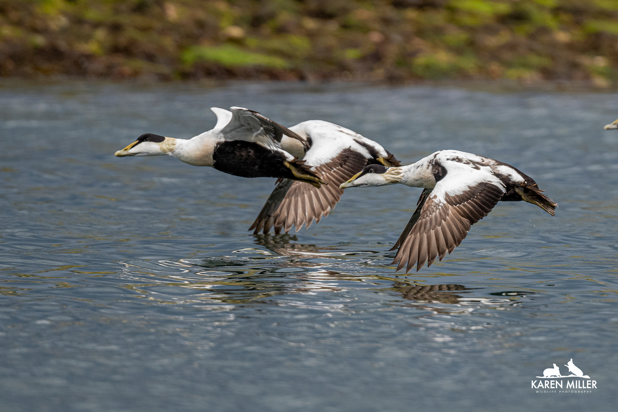 Here are some eider ducks taken on the same day. The over-exposure was user error as I’d been photographing a little ringed plover on the beach!