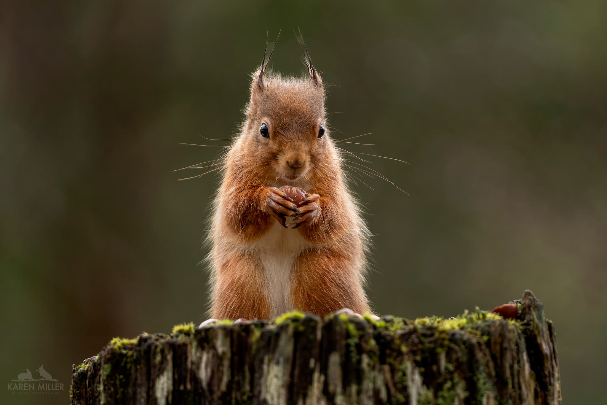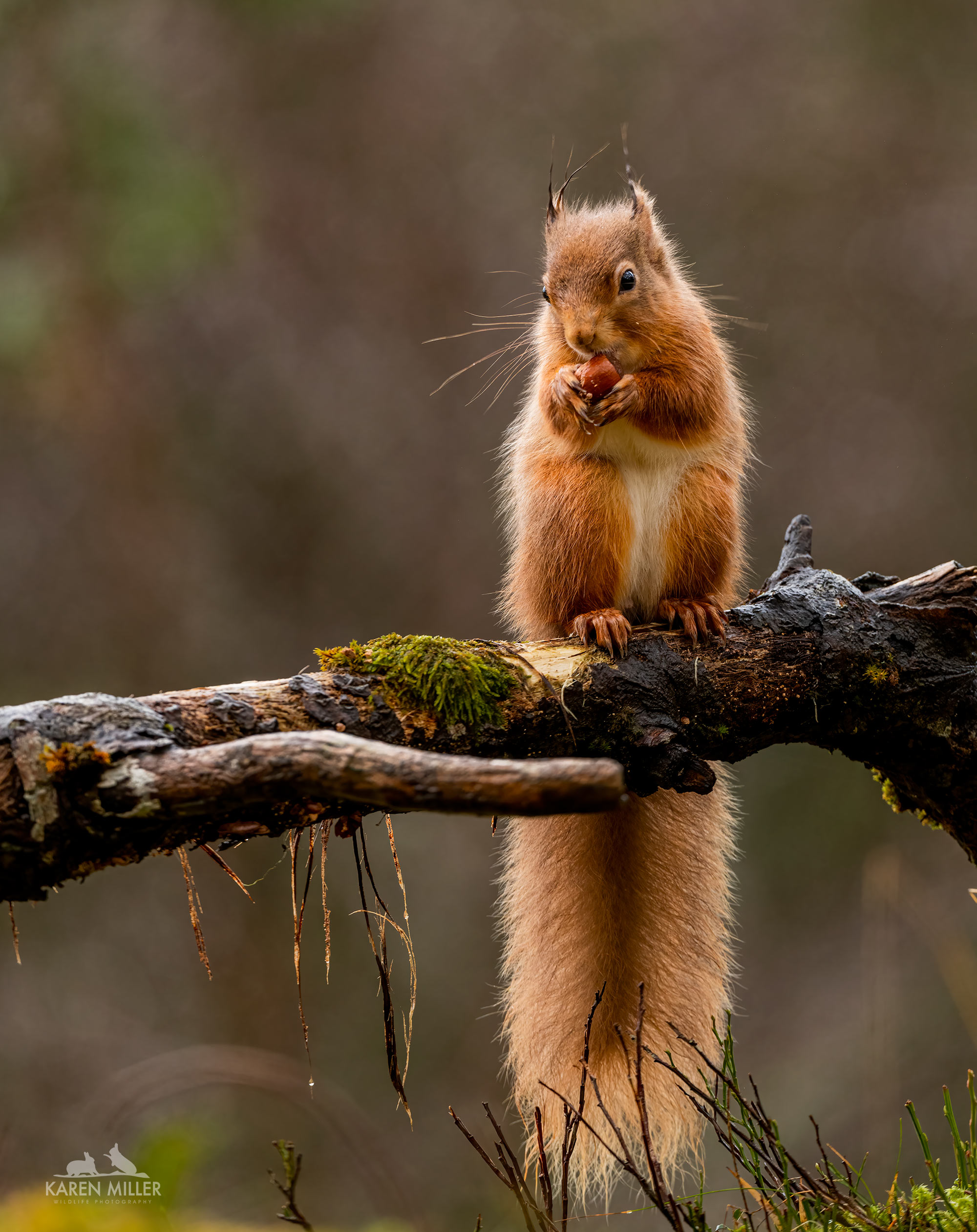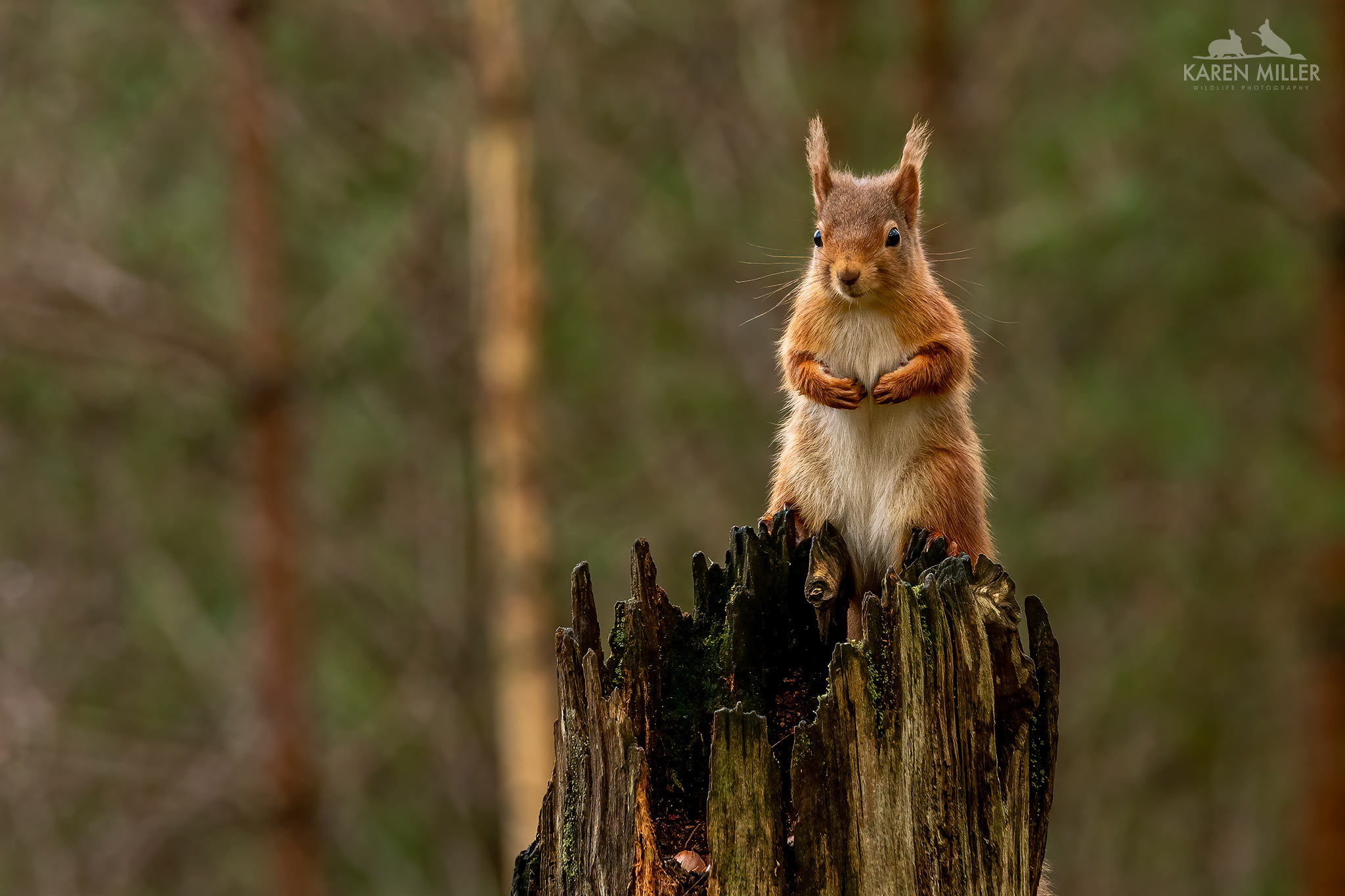 If you’d like to join me for a squirrel workshop or my 2.5 day Squirrel Therapy workshop (3 mornings of red squirrels, 2 afternoons of other subjects + 3 nights accommodation in my rental cabin “The Drey Inchberry“), then please do get in touch. They are such fantastic little creatures. I’ve spent many many hours watching and photographing them but it never gets old. I still love to go and see them. My site, as mentioned, is in deciduous woodland, it changes throughout the year and you will see the squirrels exhibiting all kinds of behaviours in the trees and surrounding area. I don’t use a hide, so we feel part of the gang and have a much better view of the whole area. This also allows for eye-level images although a chair can be provided if required.