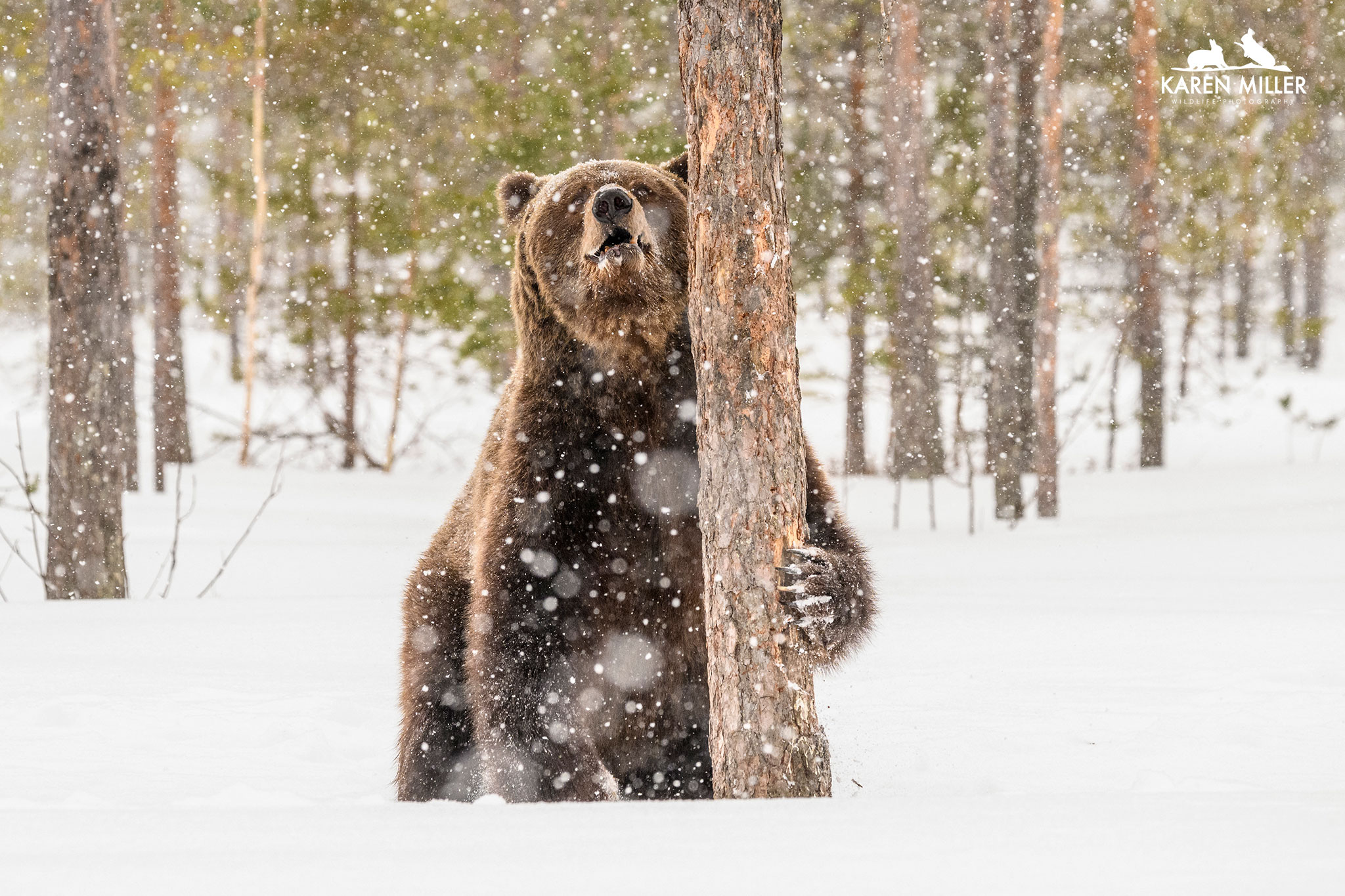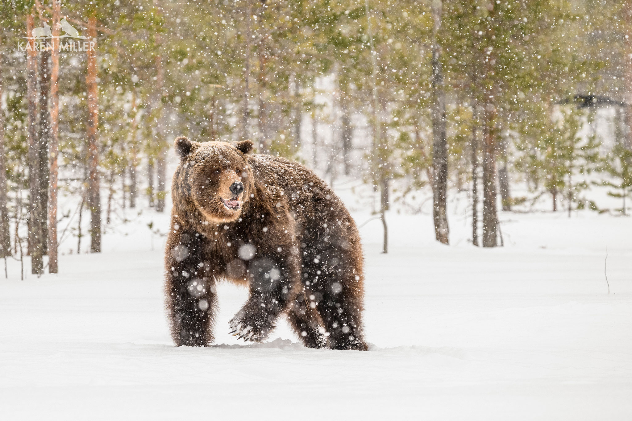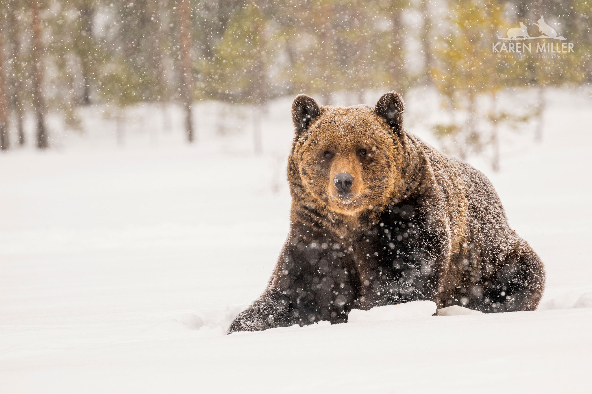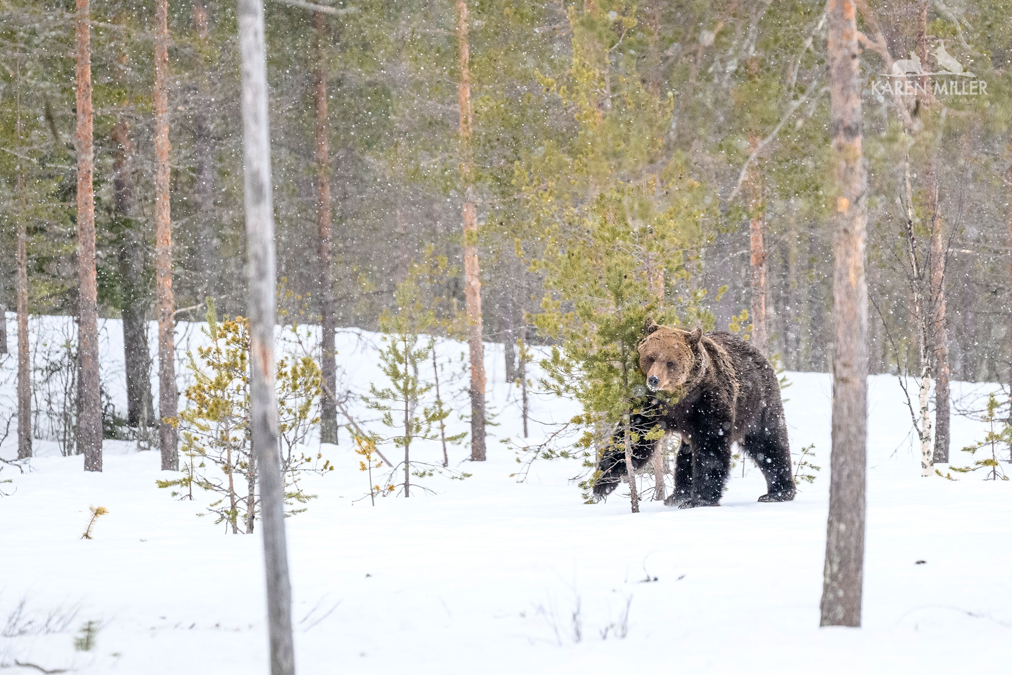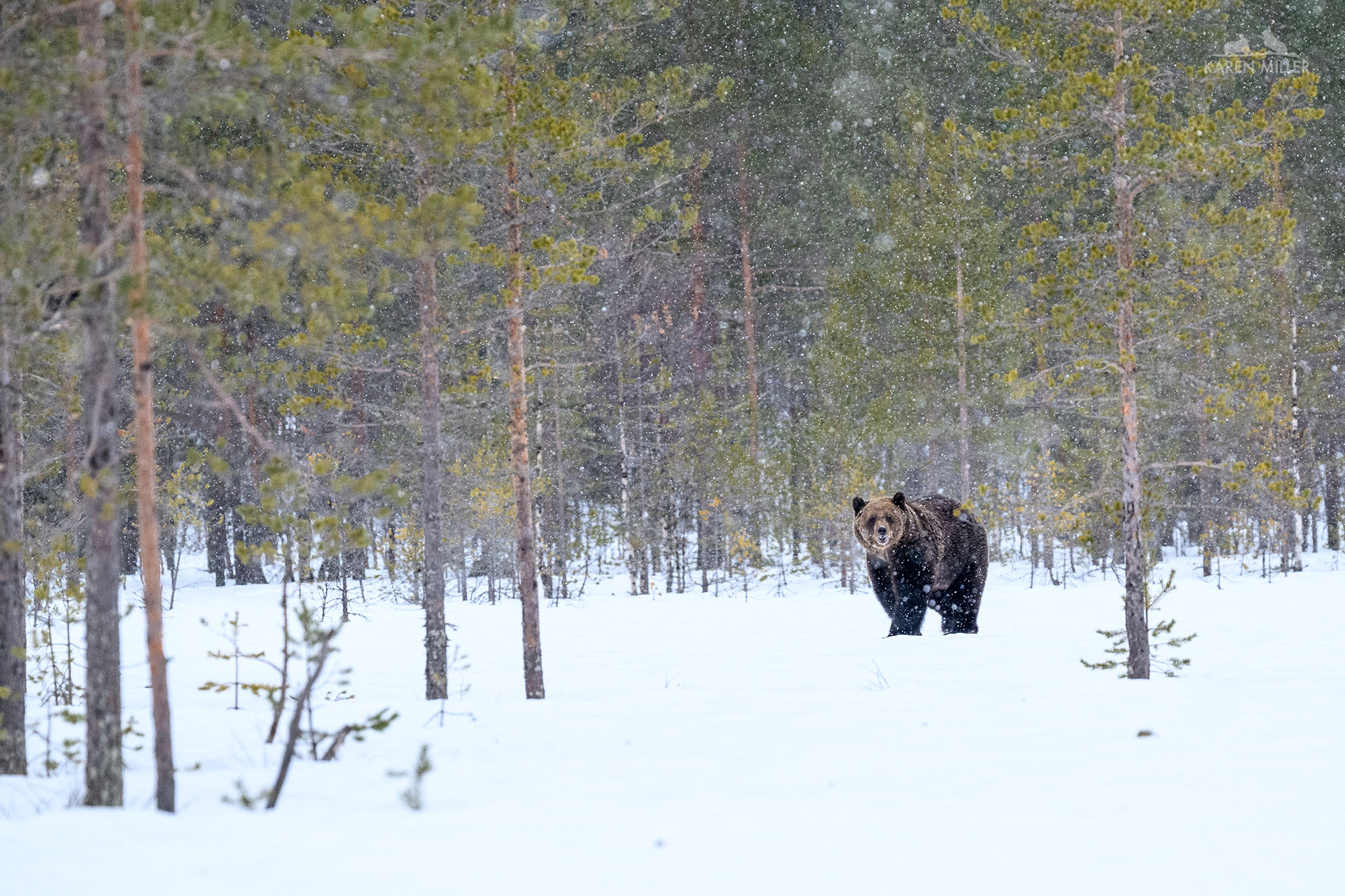 Photographing them through heavy snow proved to be quite challenging. The cameras just couldn’t auto-focus, either with tracking or on spot focus, so it had to be done manually. The bears have tiny eyes too, and it was amazing how many images were spoilt by snow in front of them.