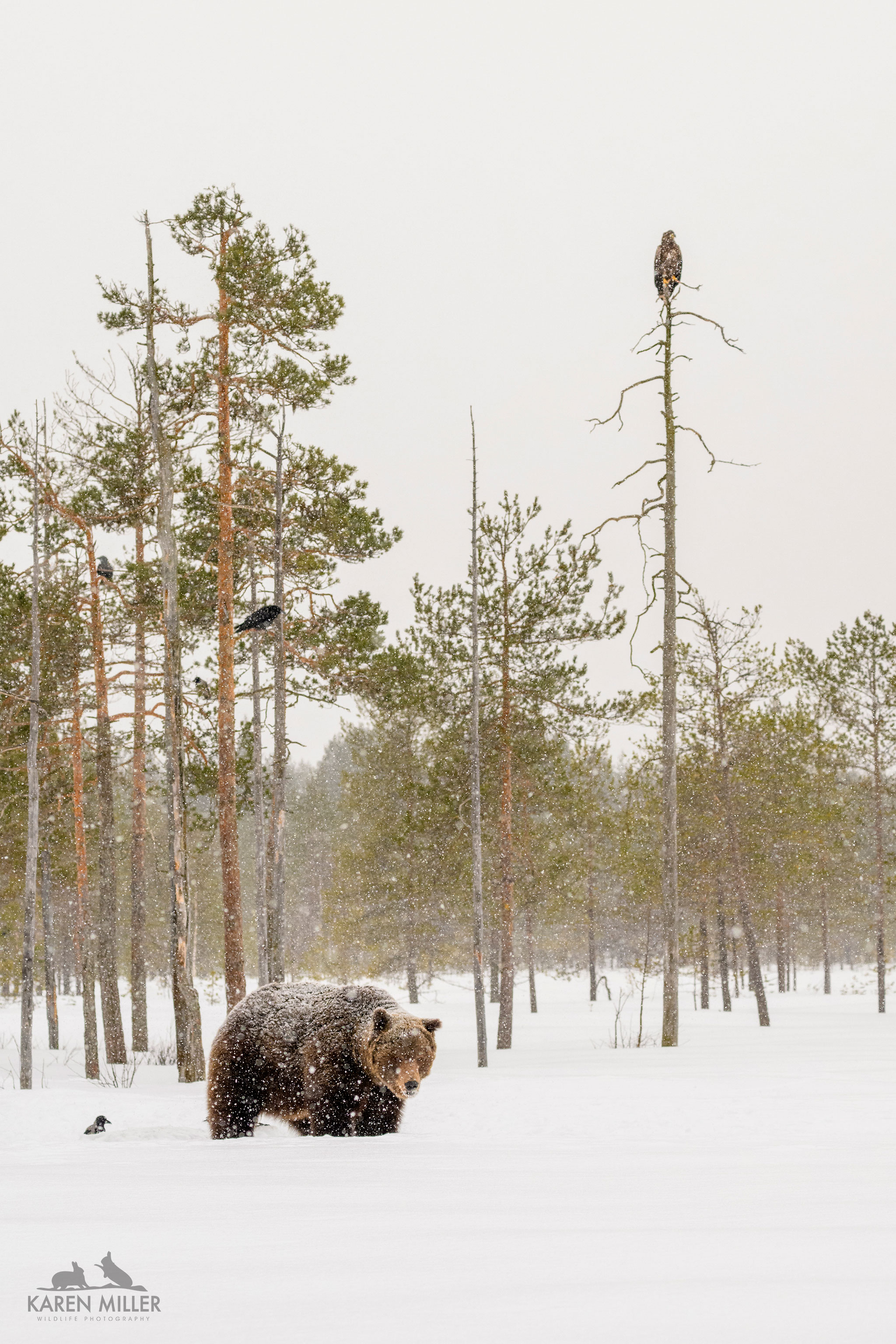 There are so many companies offering photography trips now that it was easy to become lost in the choices available. Eventually I decided on Paul Fowlie, a wildlife photographer himself, based down in Yorkshire. Not only was the tour reasonably priced but it offered the chance of brown bears, wolves, black grouse, capercaillie, wolverine and more. This seemed to be to be a perfect mix. Obviously nothing was guaranteed, but we did see all of the above with the exception, very sadly, of Capercaillie – it was far too cold and snowy so they weren’t showing as yet. One for another time…