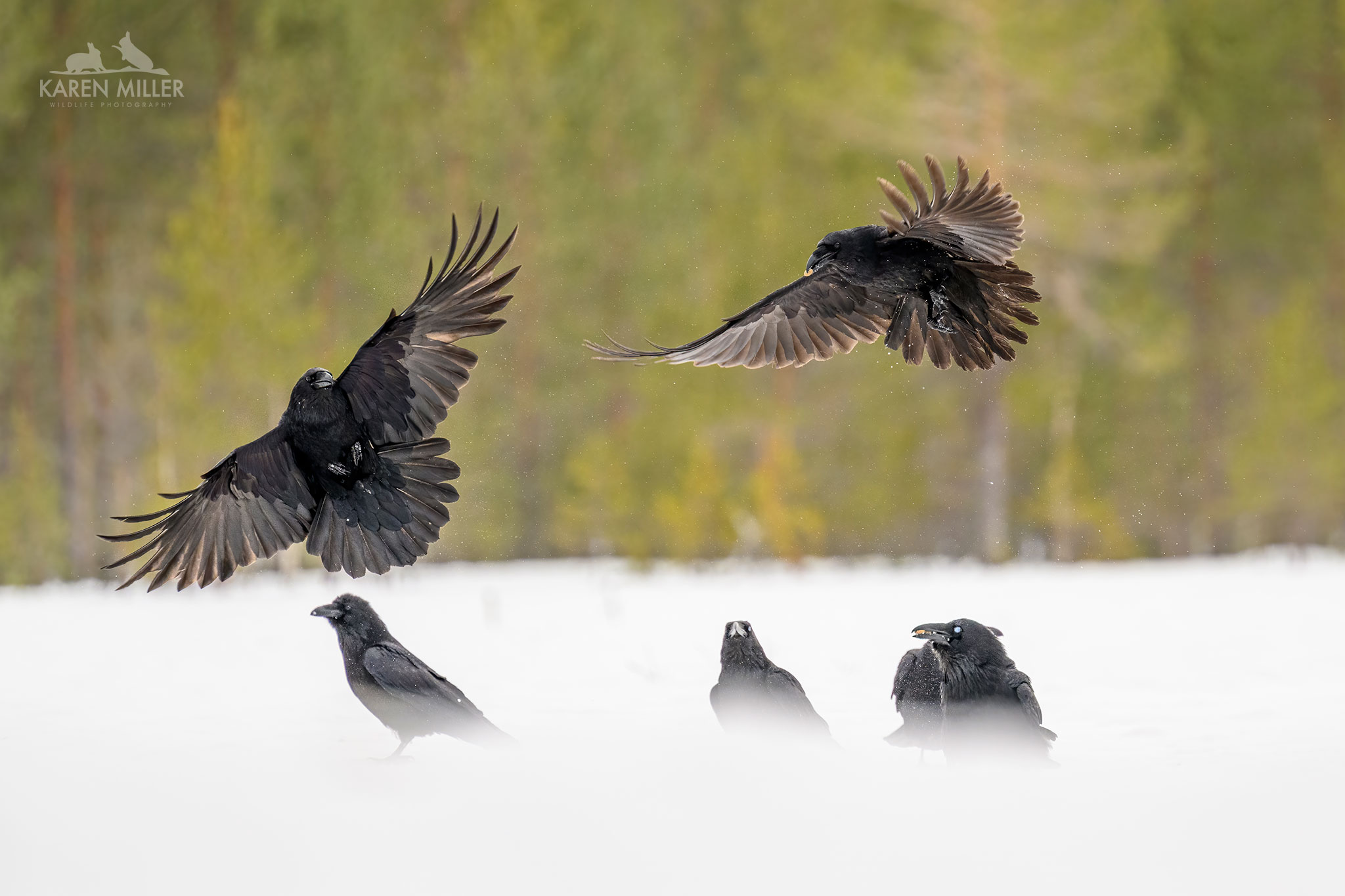 The site was baited with a pig, salmon chunks and dog biscuits. The carcass was quite unattractive, but the smell would bring in the predators. First to arrive were three corvids well known to me – ravens (lots of ravens!), hooded crows and magpies. These became a bit of a pest, getting themselves into almost every image. Amazingly they weren’t remotely scared of the large predators and hopped/flew around them being generally irritating (but amusing at times).