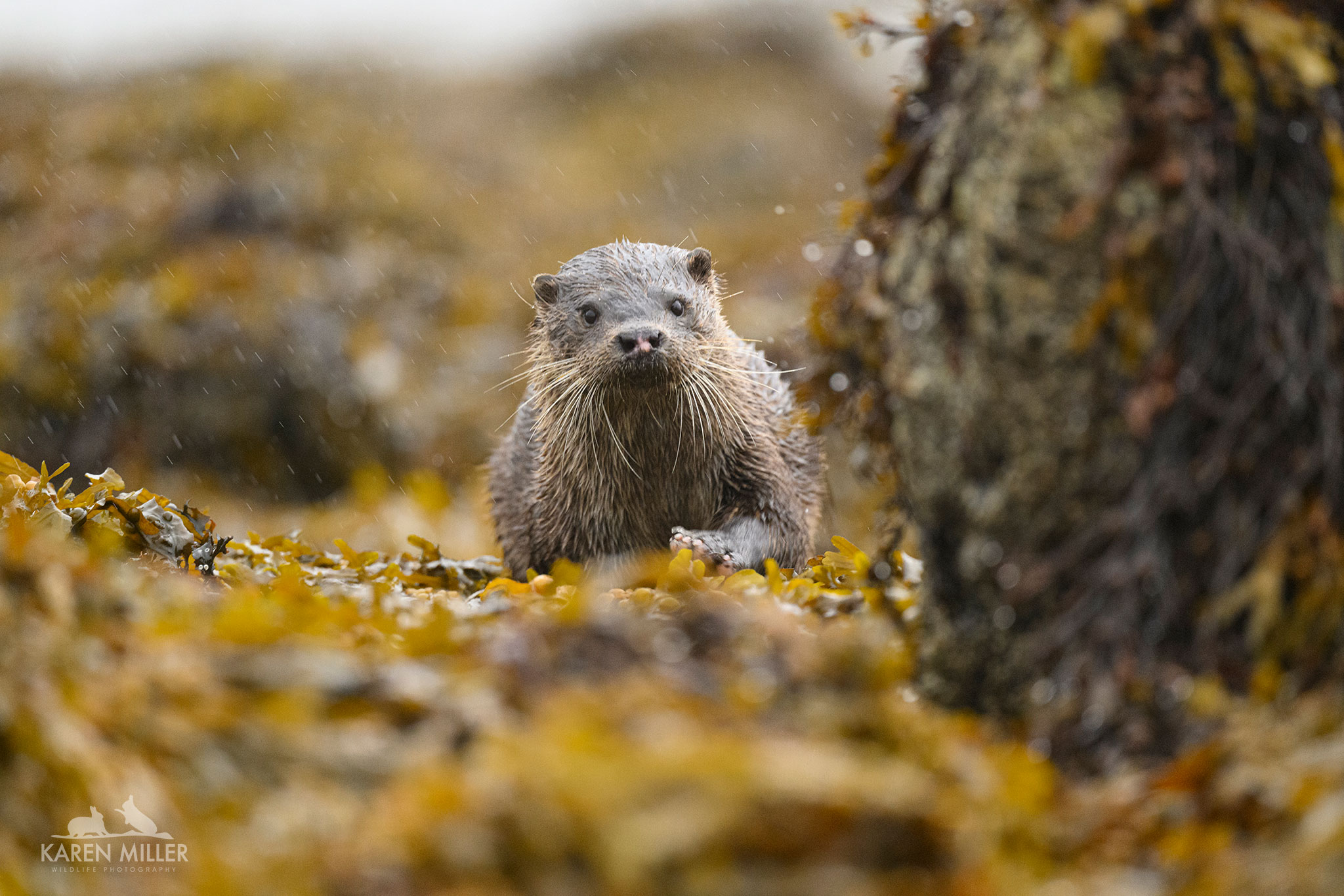 The latter part of the week was all about otters. I spent many hours sitting on a beach in some very wet weather with friend, and fellow guide, James Roddie. It was worth it though. The otters at this location are very chilled, too chilled in fact, I don’t really approve, but it meant that the usual fieldcraft of hiding behind rocks, downwind of an otter so as not to be spotted & stress the animal is unnecessary. If you sit quietly the otters just go about their business, unconcerned about your presence. One even came and almost sniffed our feet on a couple of occasions. I, for one, didn’t breath for about a minute the first time this happened.