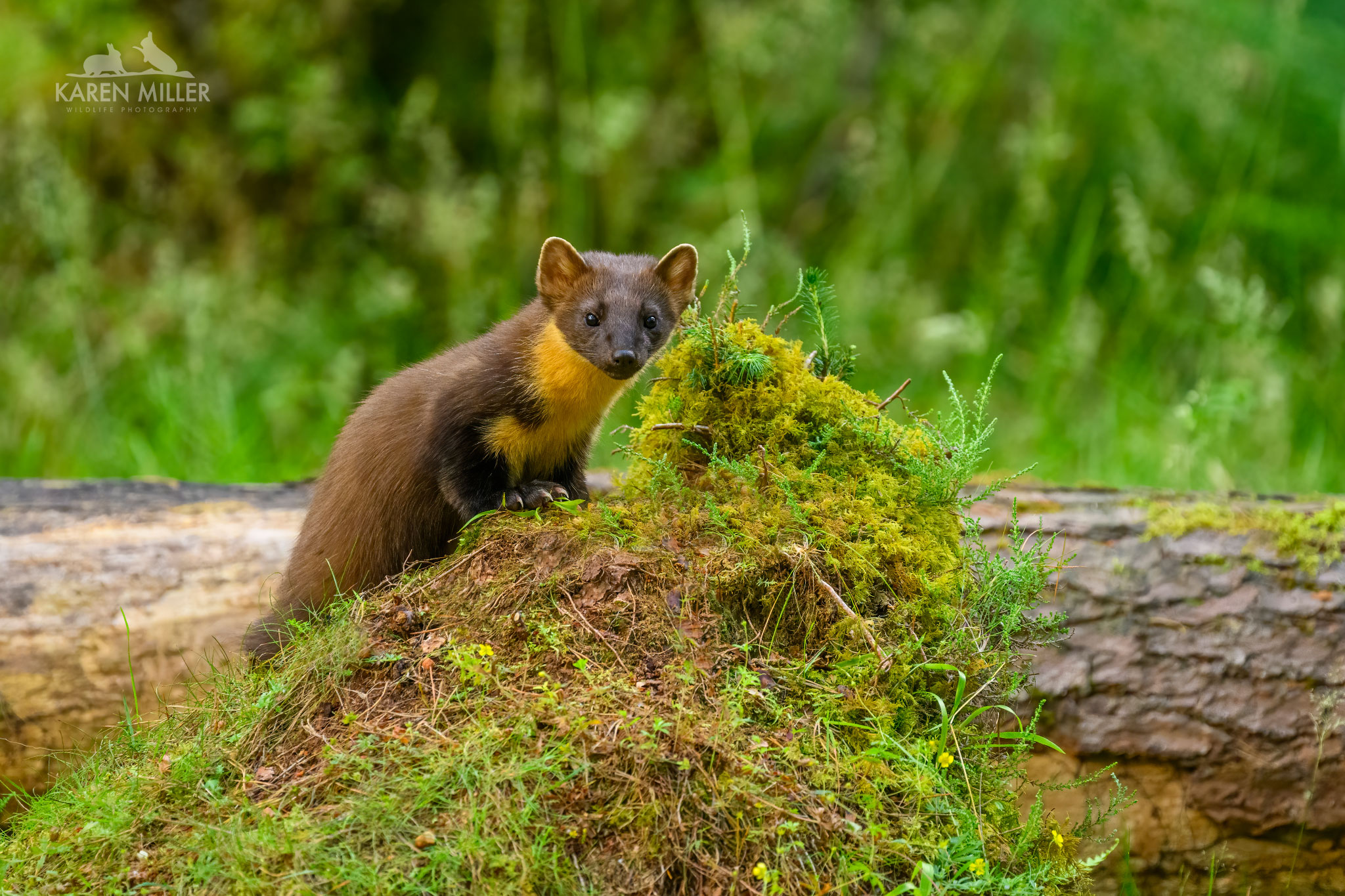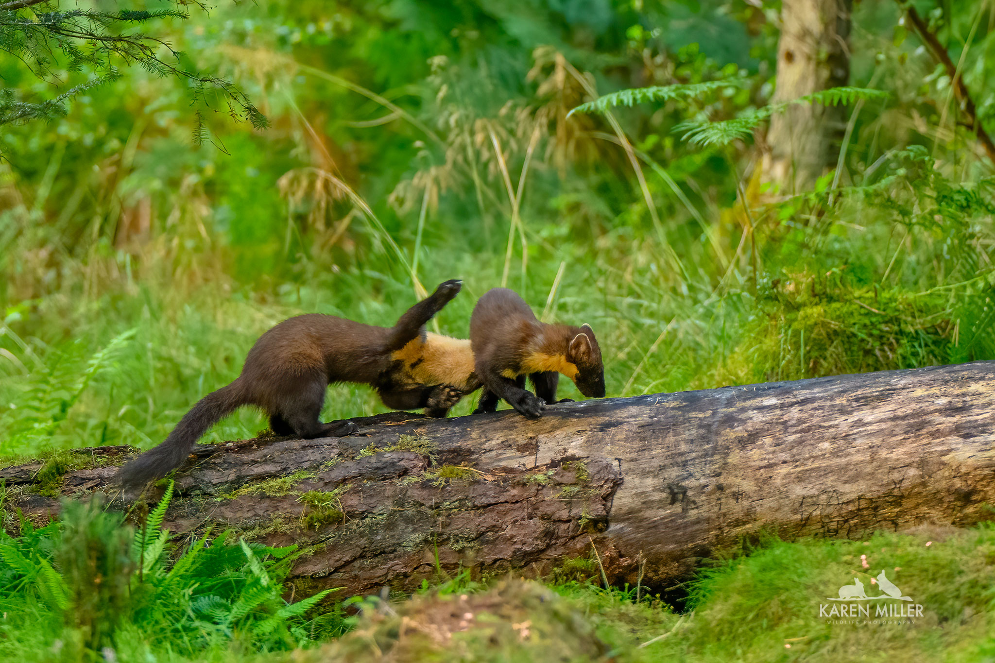 The weather over the summer was pretty awful and I was dealing with a fast deteriorating dog, Murphy, who I couldn’t leave on his own for very long. I bid a sad farewell to him in July. It was therefore very quiet workwise although I did welcome a lot of guests to my rental cabin The Drey Inchberry which was good. My main project was the local pine martens. This is just for me as they are very wary but it’s always a thrill to see them, both in person and on my trail cameras. There were more this year, last year’s kits, a male and female, at least one other female plus a pair of kits. Mum and one kit were regular visitors, and latterly I had a pair of youngsters who were wonderful. They’d come in for up to an hour, not to eat, but just to play with each other. Fighting, pouncing and chasing. I loved to watch them on the cameras. The weather was frustratingly overcast most evenings so it wasn’t possible to go up and photograph them, plus they are very unreliable! But I did have some sightings.