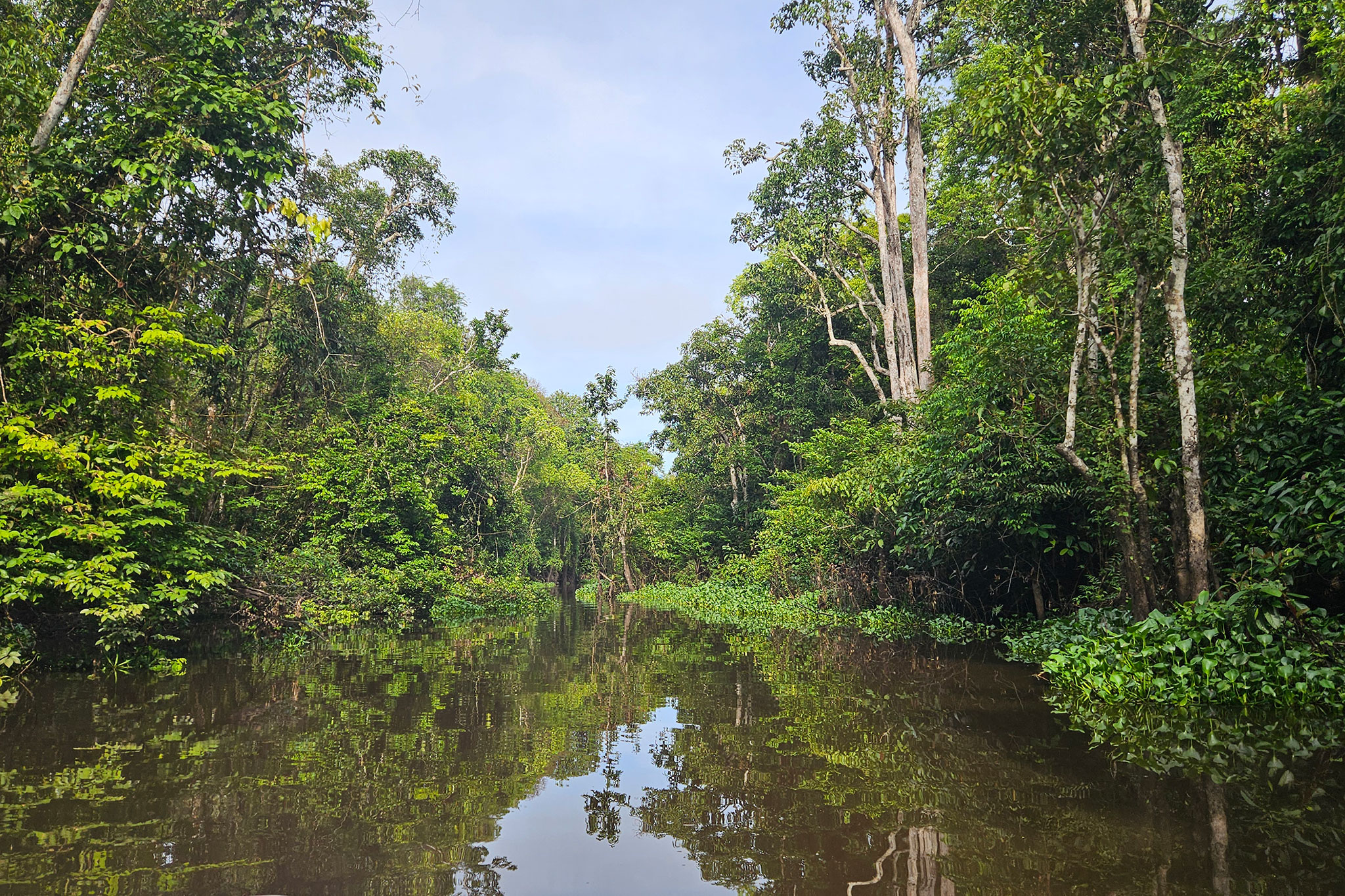 On our final morning it was just Gemma and I left with Sonny and we were absolutely delighted when we came across a truly wild orangutan female and her young infant very high up in a tree. We watched for ages as she munched on the leaves. The little one was hard to spot and we only had glimpses, but to see orangutans like this was a long-time dream of mine. It was such a privilege to have this experience.