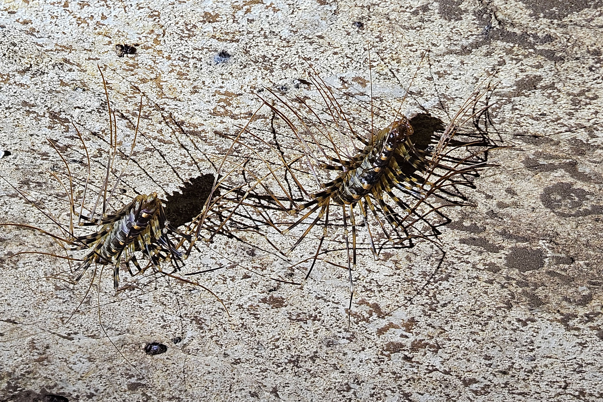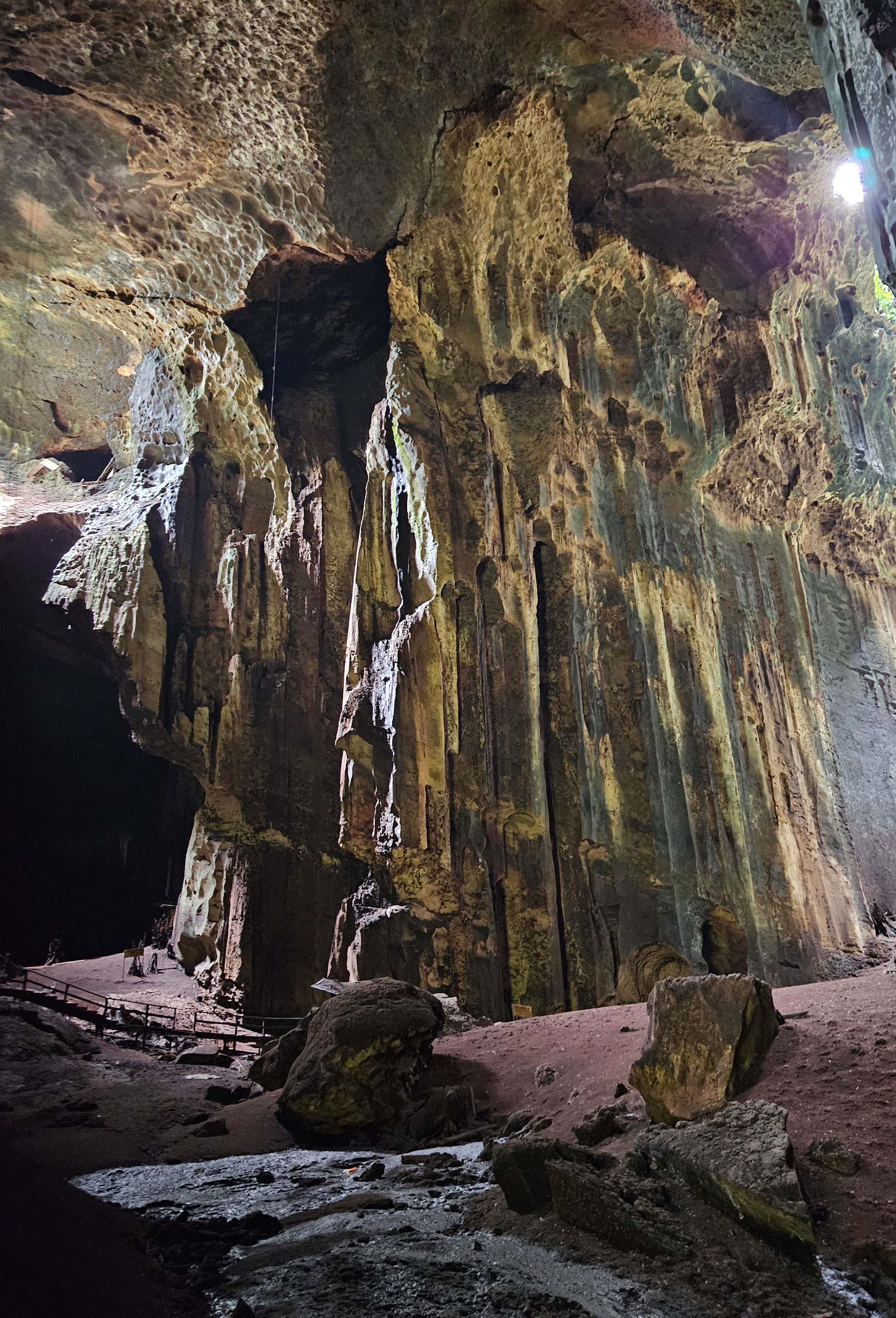 There was one land-based excursion that we were booked on whilst in Kinabatangan. That was a visit to the Gomantong Caves. This was my least favourite thing we did in Borneo. The cave was filled with huge cockroaches and very scary large poisonous centipedes the latter of which was nightmare inducing. There was a strong stench of ammonia. We wore hard hats to protect our heads from bat droppings. Some phone photos of the centipedes, the cave and the cockroaches.