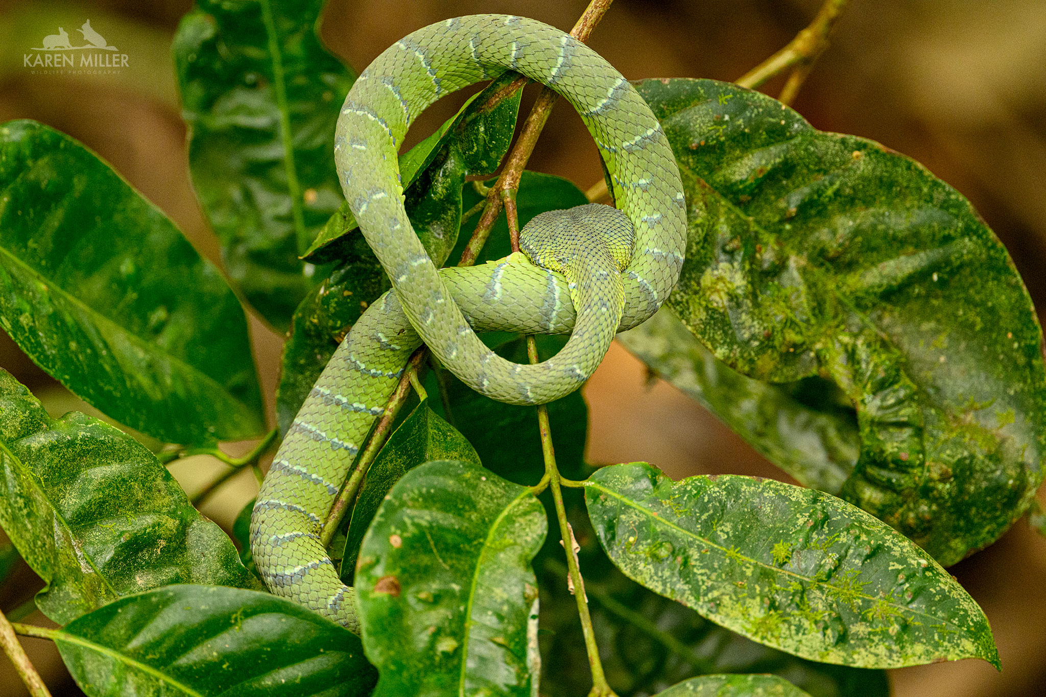 Before we left Sepilok we were introduced to Sonny who was to be our guide for the duration of our stay in Kinabatangan. Rather than travel by car we went by boat, stopping for lunch at another SI Tours resort, the Abai Jungle Lodge. Sonny took us along one of the boardwalks to show us a keeled pit viper asleep in a tree. This was the same species of snake we saw at the Sun Bear Sanctuary in Sepilok, but this one more visible and larger!