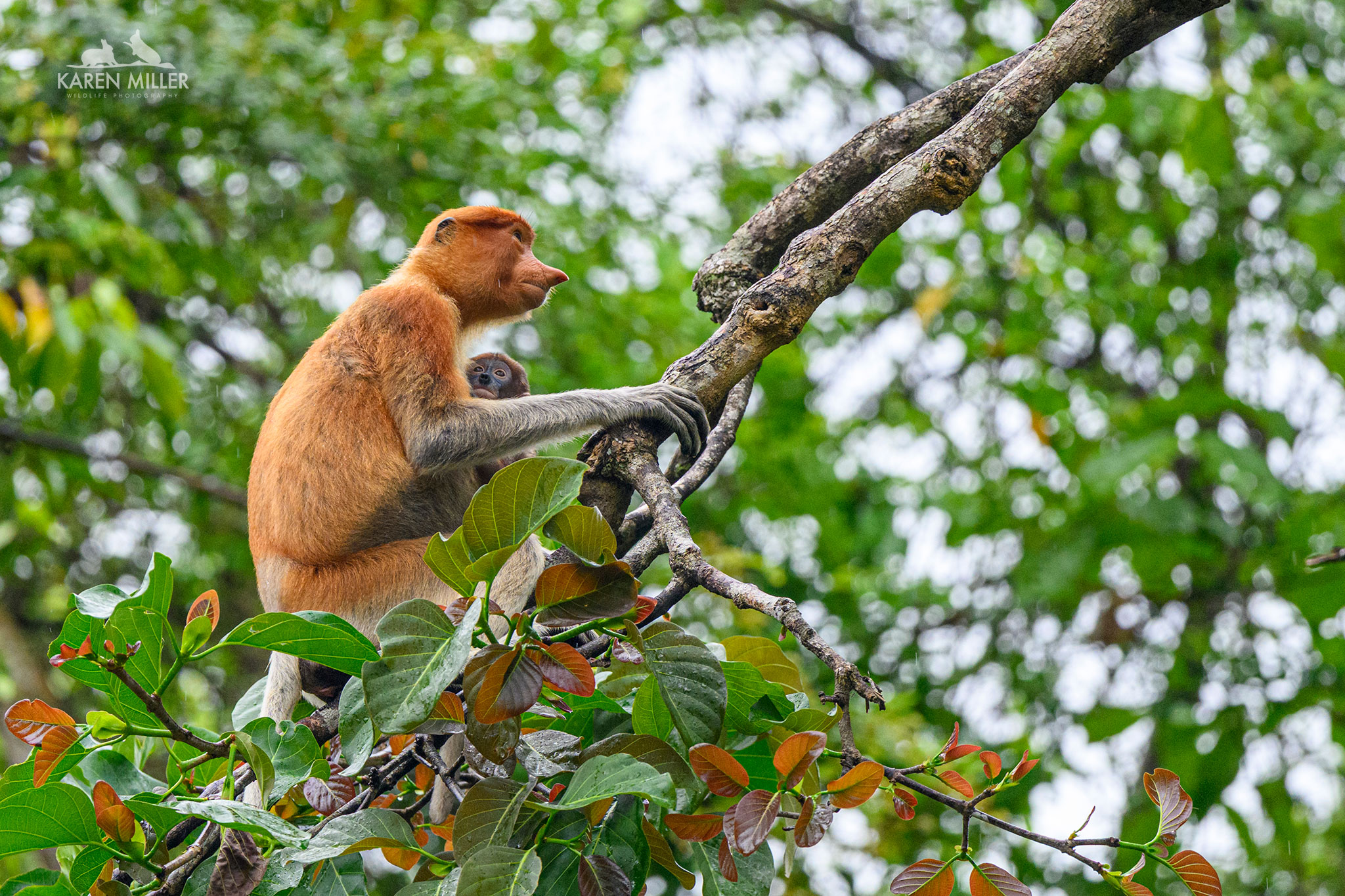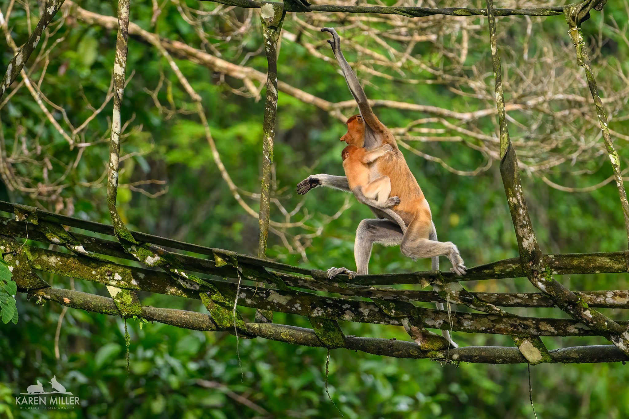 Their young are a similar colour to the proboscis monkeys so easy to spot as they cling to their mothers. This little one was so funny to watch.