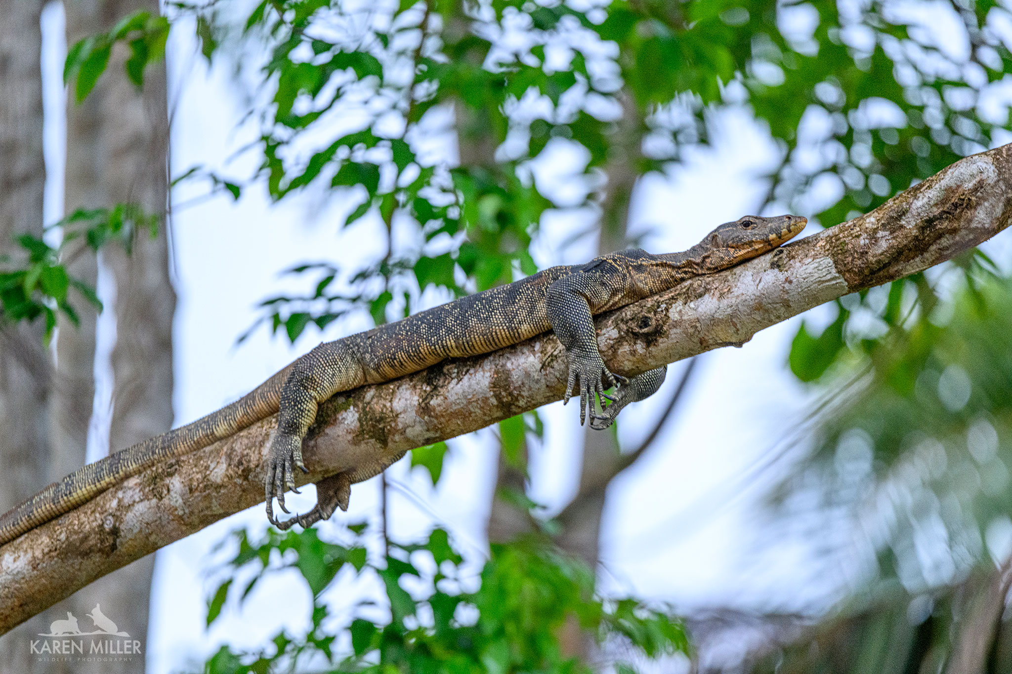 Sonny also spotted a monitor lizard slumped on a tree. Again we saw one in Kuching, but this was bigger, although still not full sized. Well camouflaged, the guides really are great at seeing the wildlife!
