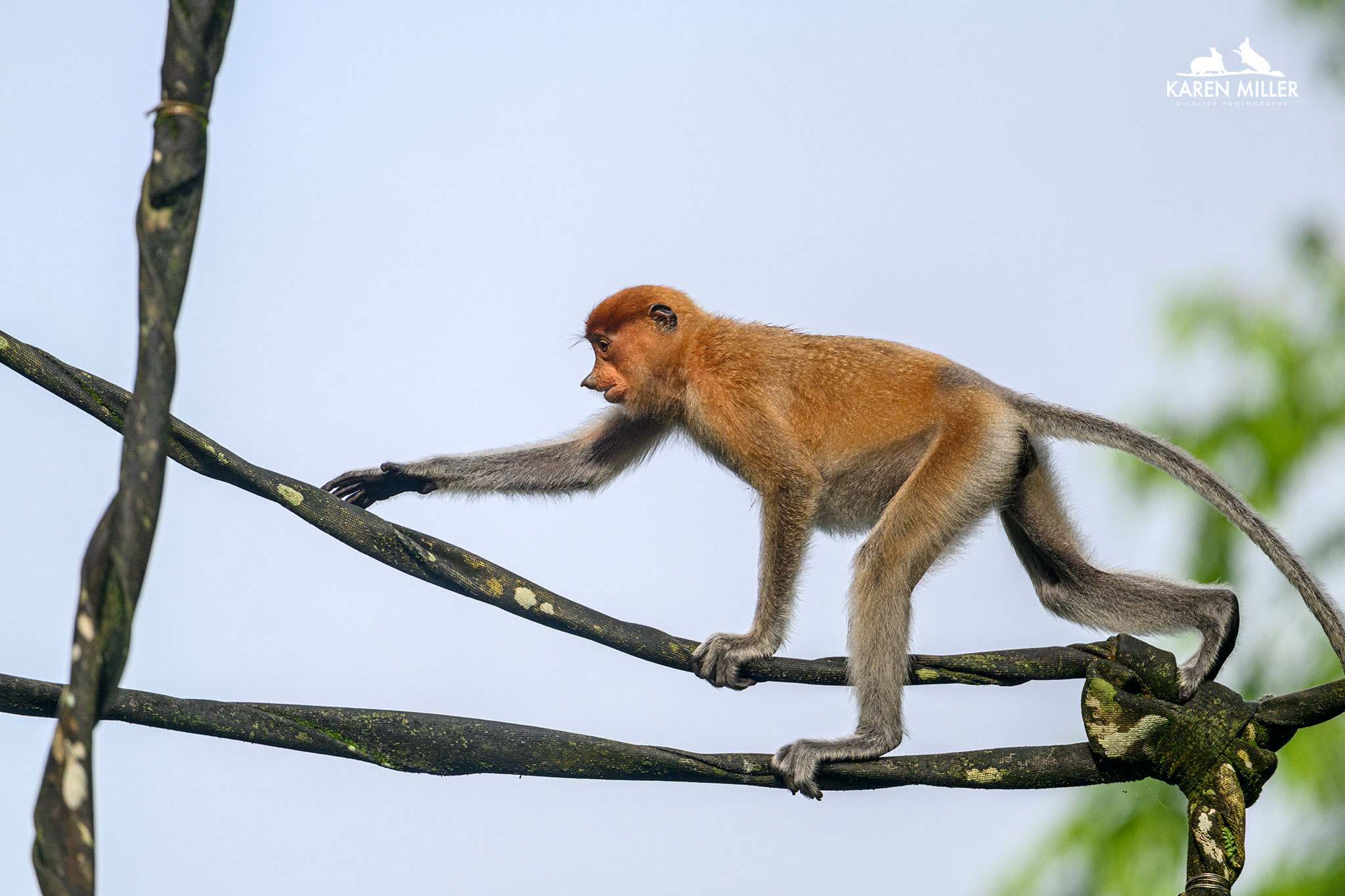 I really like reptiles, but let’s be honest, I was primarily in Borneo for the mammals, most specifically the monkeys and apes. In Sepilok we had fantastic views of the orangutans and proboscis monkeys at sanctuaries and both were wonderful. What I hadn’t expected was to see so many proboscis monkeys along the river’s edge, but they were everywhere in large family groups with a dominant male (“Big Daddy”) and lots of youngsters. Such a joy to watch. I’d first come across these monkeys on a David Attenborough programme, where, with the usual slightly over-the-top drama, we saw a troupe attempting to cross a crocodile infested river.