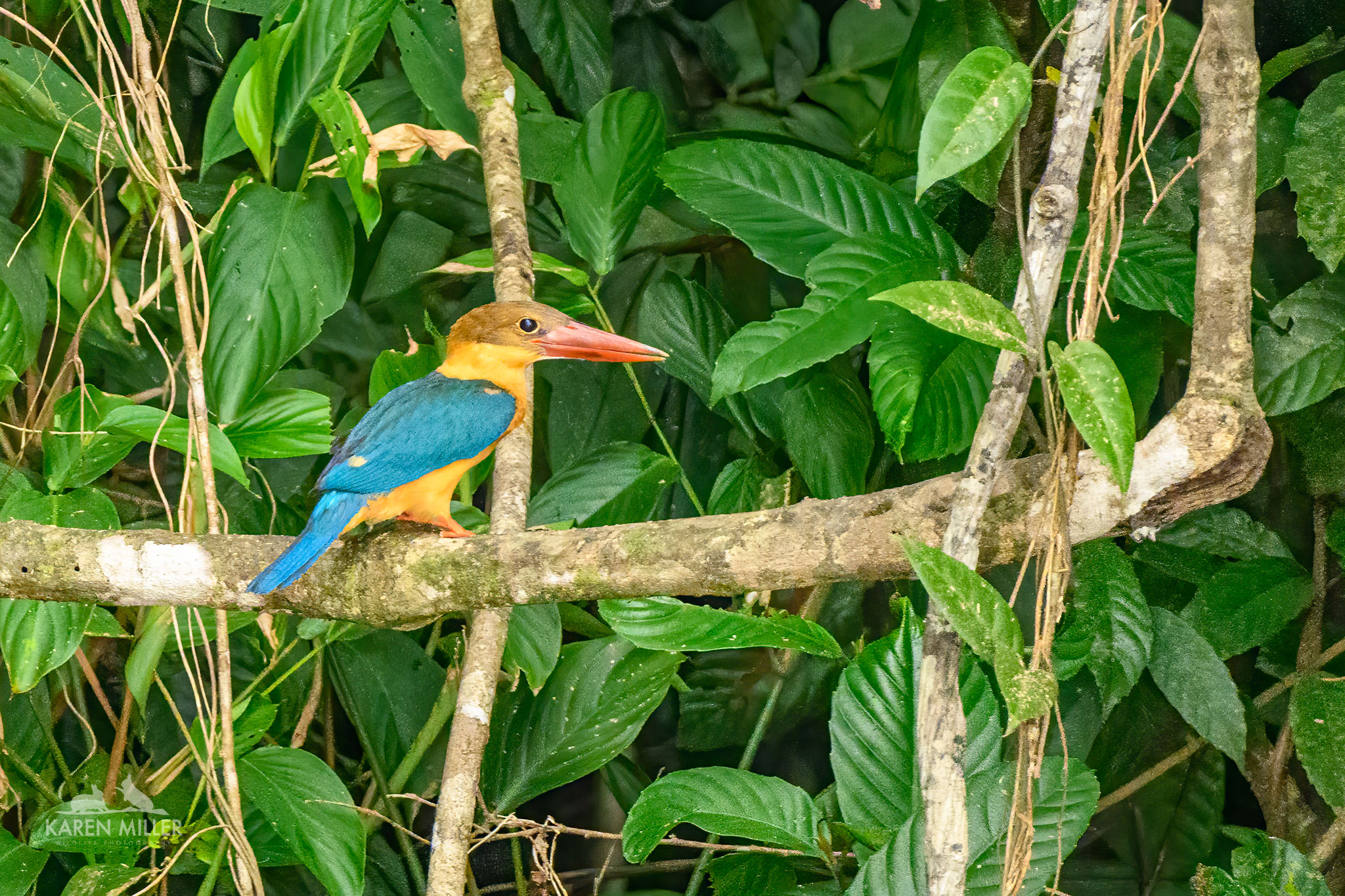 I’ll continue with the birds first. We saw two species of kingfisher. The largest and one of the smallest. The largest is the stork-billed kingfisher. We’d seen some of these in Kuching when on a boat trip in Santubong. Not the prettiest bird, but very distinctive and colourful! Mostly they sat obscured by branches, but on one occasion I managed to capture a bird in flight – thanks to eye tracking on the Nikon Z8.