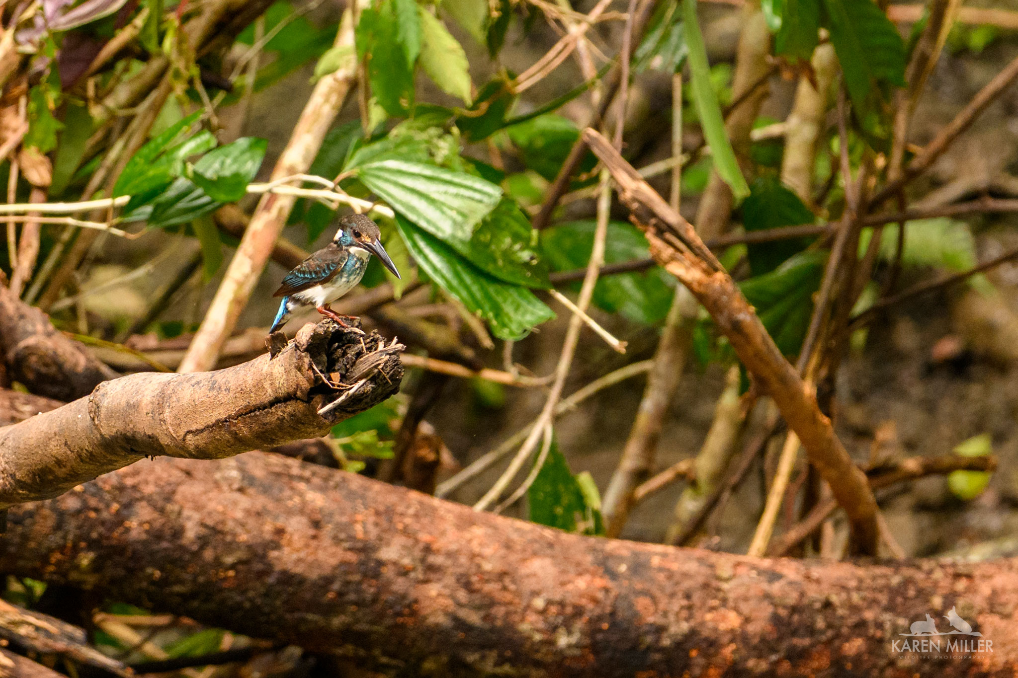When not on an excursion there was very little to do. Although there are named trails around the resort it’s not permitted to go on them without a guide due to the dangers jungles present. There is a small hide from which you can sometimes see otters. We didn’t get those, but did have sightings of two species of kingfisher. The smaller one here is a blue-banded kingfisher which is apparently the least common of the Borneon kingfishers. The other is the largest, the stork-billed which we saw everywhere although it didn’t like to pose for photos!