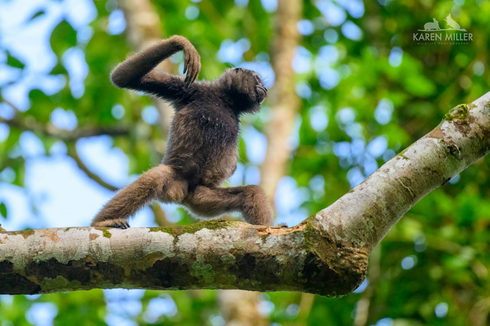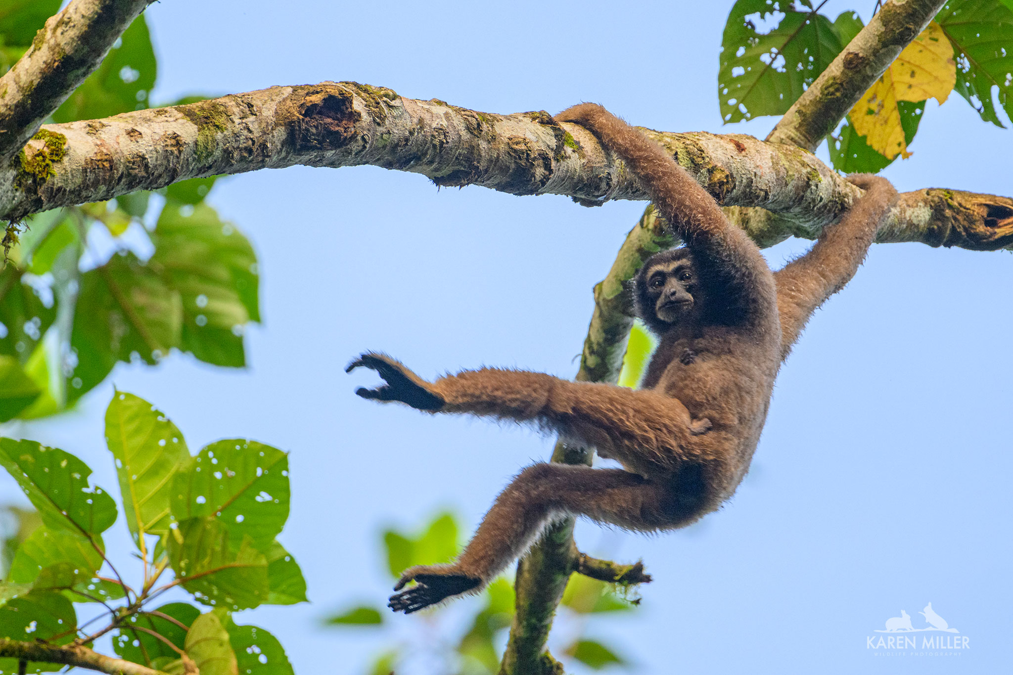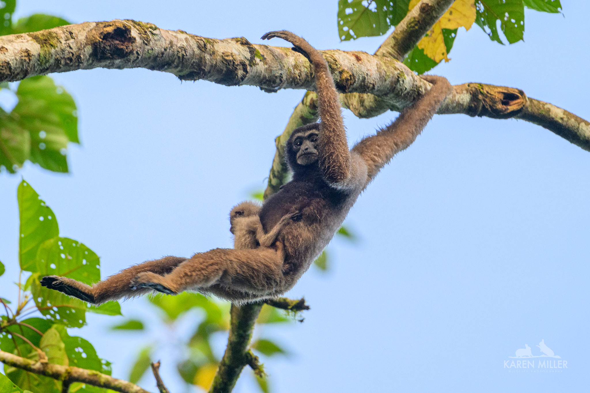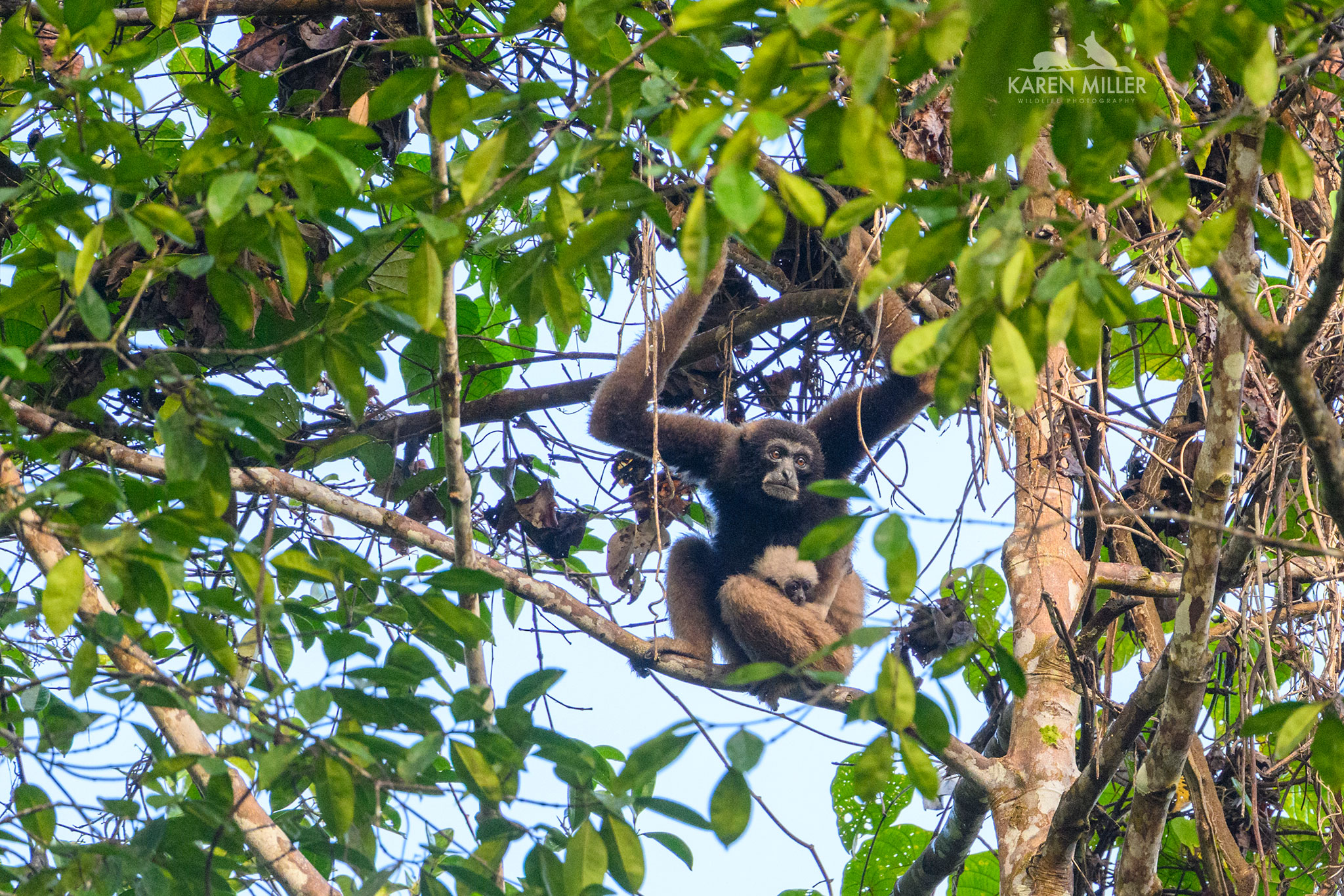 In the morning we went on dawn walks. The primary reason for these was to hopefully catch sight of the Northern Gibbon families that live close to the resort. On the first morning there were none to be seen or heard, but on the second we had the most wonderful views of one of the families – two adults, two older children and a tiny baby clinging to mum. We heard them calling first and then they came into sight, flying through the canopy using their exceptionally long limbs. I didn’t expect close sightings, but one of the youngsters descended from the treetops and actually sat in a tree very close to us. Thrilling. This was one of my favourite Borneon experiences.